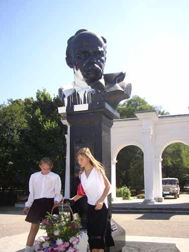 1 вересня 2005 року школярі прийшли до пам`ятника Тарасу Шевченку у Сімферополі, а він - ось такий...