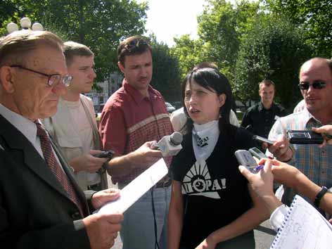 Під таким лозунгом 6 вересня у Сімферополі перед приміщенням Представництва Президента України в Криму відбулася акція Кримського представництва Всеукраїнської громадської організації "ПОРА!" на захист української преси і української мови. "Не видно й не чути" - так, напевне, можна назвати цю пантомімічну сценку, яку розіграли перед Представництвом Президента хлопці у чорних футболках з емблемою "Пори". У виступах та у розповсюджуваному під час акції прес-релізі йшлося про те, що байдужість нової-старої влади до проблем друкованих державномовних ЗМІ, громадська інфантильність призвели єдину українську газету "Кримську світлицю" до межі банкрутства. Фінансування газети припинено ще при Кучмі, то невже ми ще при кучмізмі живемо?! Тим часом, проросійські політичні сили постійно висувають звинувачення у насильницькій українізації, що начебто зараз поширюється. І це в той час, коли абсолютна більшість шкіл, усі без винятку вищі навчальні заклади, засоби масової інформації послуговуються російською мовою. В таких умовах українці, чиї гуманітарні права обмежуються, почувають себе в Криму національною меншиною. Прикладом служить і той масовий спротив, організований проросійськими шовіністичними організаціями, що намагалися перешкодити відкриттю в автономії ще однієї української школи в с. Комсомольському. Деяким політичним силам вигідно зараз збурювати мовне питання, оперуючи неправдивими доказами. Вигідно грати на національних почуттях, розколюючи кримське суспільство. Але всьому є межа. Просто обурення викликає факт сплюндрування 1 вересня у Сімферополі української святині - пам'ятника Тарасу Шевченку. У зв`язку з цими подіями Кримське представництво ВГО "ПОРА!" своєю акцією розпочинає програму "ПОРА! ЗАХИЩАТИ УКРАЇНСЬКЕ!", спрямовану на захист української мови, преси, культури, духовності. Тож метою нинішньої появи кримської "Пори" перед Представництвом Президента було ще раз привернути увагу і влади, і громадськості до наболілих кримсько-українських проблем. Справедливим буде зазначити, що і помічник Представника Президента Павло Романович Власенко, який вийшов до пікетувальників, і перший заступник Представника Євген Михайлович Драп`ятий, який зустрівся з лідерами "Пори", роблять усе (і навіть більше!), що у їхній компетенції, для розв`язання цих проблем. Але Представництво й досі обезголовлене. Тому "Пора!" збирається продублювати свою акцію і в столиці... Фото В. КАЧУЛИ.