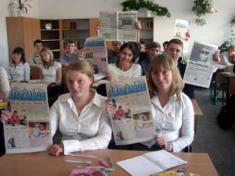 ТАКОГО В КРИМУ ЩЕ НЕ БУЛО: В УКРАЇНСЬКІЙ ГІМНАЗІЇ м. СІМФЕРОПОЛЯ МІЖ КЛАСАМИ ОГОЛОШЕНО ЗМАГАННЯ НА КРАЩУ ОРГАНІЗАЦІЮ ПЕРЕДПЛАТИ НА "КРИМСЬКУ СВІТЛИЦЮ"! У такий спосіб директор гімназії Наталя Іванівна Руденко і педколектив вирішили підтримати газету, без якої, за словами директора, неможливо собі уявити духовної палітри Криму. "Тим більше, що саме "Кримська світлиця" доклала свого часу стільки зусиль для того, щоб в Сімферополі була, нарешті, побудована наша гімназія, - продовжує Наталя Іванівна. - Наші вчителі постійно використовують українознавчі, історичні, літературні, етнографічні "Світличні" публікації на уроках. Гімназисти беруть участь у численних газетних - пісенних, літературних, комп`ютерних конкурсах. То як же ми можемо допустити, щоб у нас раптом не стало такої газети-помічниці?!" "Світлиця" щиро дякує своїй сестриці-гімназії за таку поміч у цю скрутну для газети пору! Якщо й справді понад 800 гімназистів загітують своїх батьків підтримати часопис, а ще коли цей почин підтримають в інших кримських школах, - ніхто нам не дорікне, що українців в Криму не видно й не чути, а українськомовна газета нікому тут не потрібна. Тож приєднуйтеся, земляки-українці - "кримські браття у першім колінці"! Українські гімназисти вибирають "Світлицю" й "Джерельце"! Фото В. КАЧУЛИ.