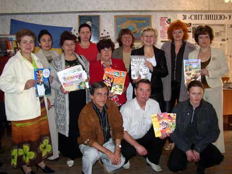 "Учітесь, читайте, чужого навчайтесь і свого не цурайтесь" У СЕРЕДУ в "Кримській світлиці" висадився справжній видавничий "десант"! По дорозі до "Артеку", де у ці дні проходить Всеукраїнська акція "Учітесь, читайте, чужого навчайтесь і свого не цурайтесь", редакцію провідали (ось вони - вигоди нашого привокзального розташування!) працівники Державного комітету телебачення і радіомовлення України, автори та редактори популярних дитячих видань "Соняшник", "Веселочка", "Однокласник", "Вулик", "Ліхтарик", "Країна знань", "Лучик", "Юний натураліст". Щоб розповісти про цю акцію докладніше і "кольоровіше" (а вона того варта!), ми плануємо у жовтні зібратись силами і видрукувати спецвипуск "Джерельця". Виглядайте! На фото: працівники департаменту видавничої справи та преси Держтелерадіо України, автори та редактори популярних дитячих видань "Соняшник", "Веселочка", "Однокласник", "Вулик", "Ліхтарик", "Країна знань", "Лучик", "Юний натураліст" в гостях у "Кримської світлиці". Фото В. КАЧУЛИ.