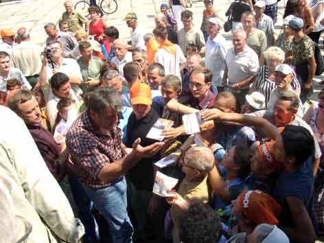 На фото: серпень 2004-го, передвиборна зустріч Віктора Ющенка із кримчанами. Фото В. КАЧУЛИ.
