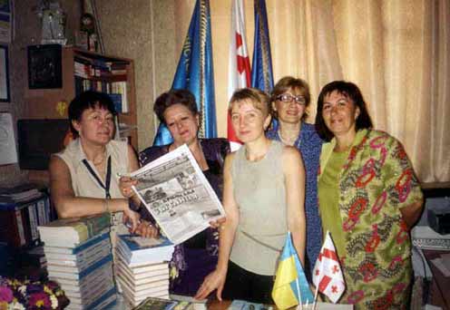 На фото: вчителям Першої української школи ім. М. Грушевського в Тбілісі «Кримська світлиця» також стала помічницею! (Крайня ліворуч - директор школи Ганна Матвєєва).