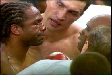 На фото: Кличко сп╕вчува╓ Бьорду за завдан╕ травми, але - це ж бокс...