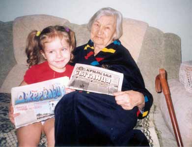 м. Льв╕в. На фото: холодноярський р╕д продовжу╓ться - правнучка Дем’яна Чучупака - Даринка з бабусею Л╕дою ╕ нашим кримським «Джерельцем». (Фото С. Лащенка).