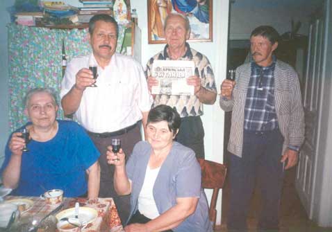 На фото: наш╕ нов╕ передплатники з╕ Льв╕вщини п╕дн╕мають келихи за «Кримську св╕тлицю» ╕ за багатонац╕ональне кримське здоров`я! (Ольга Грицина - перша л╕воруч).