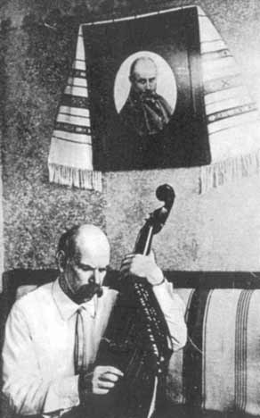 н╕хто не торкався. Кобза вис╕ла на ст╕н╕, на килим╕ б╕ля л╕жка...