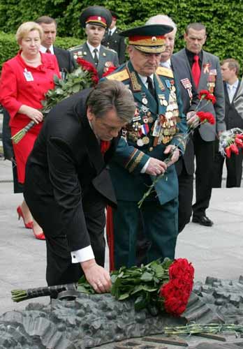 ПРЕЗИДЕНТ УКРА╥НИ В╤КТОР ЮЩЕНКО ПРИВ╤ТАВ УКРА╥НСЬКИЙ НАРОД З ДНЕМ ПЕРЕМОГИ. «В╕дда╓мо шану кожному укра╖нському геро╓в╕, що в час во╓нного лихол╕ття боровся за визволення р╕дно╖ земл╕ в╕д тотал╕тарних загарбник╕в. Пам’ять про кожного во╖на, кожну жертву ╕ кожного рят╕вника Укра╖ни ╓ ╕ буде для нашого народу в╕чною ╕ нерозд╕льною», – сказав Глава держави, виступаючи п╕д час святкових урочистостей поблизу Нац╕онального музею ╕стор╕╖ Велико╖ В╕тчизняно╖ в╕йни в Ки╓в╕. В╕ктор Ющенко нагадав страшну статистику, за якою 7 м╕льйон╕в укра╖нц╕в полягло на фронтах, в партизанських загонах, п╕дп╕лл╕, гестап╕вських кат╕внях, 2,4 м╕льйона були вивезен╕ в Н╕меччину. А серед тих, хто пройшов та пережив в╕йну, зараз залишилося в живих менше третини. В Укра╖н╕ сьогодн╕ прожива╓ 2,9 м╕льйона ветеран╕в: 268 тисяч - ╕нвал╕д╕в, 374 тисяч - учасник╕в бойових д╕й, 2263 тис. учасник╕в в╕йни. 204 ветерани мають особлив╕ заслуги перед Батьк╕вщиною. Президент закликав громадськ╕ орган╕зац╕╖, пол╕тичн╕ парт╕╖, вс╕х громадян згуртуватися навколо сп╕льних звершень минулого. «Ми повинн╕ свято берегти кожного ветерана, який серед нас. ╤ ця турбота ма╓ виявлятись у щоденному чутт╓вому ставленн╕ син╕в ╕ доньок до власних батьк╕в. Це – наш борг, наша вдячн╕сть», – сказав В. Ющенко. В╕н закликав ветеран╕в зробити крок назустр╕ч один одному задля Укра╖ни та прийдешн╕х покол╕нь. «Я твердо переконаний – ми повинн╕ пишатися численними св╕тлими прикладами ╓дност╕ ╕ мужност╕ нашого народу у роки в╕йни», – сказав Президент. В╕н в╕дзначив, що цю ╓дн╕сть творили м╕льйони укра╖нських ╕мен, таких, як Олександр Довженко, Олесь Гончар, Микола Ватут╕н, Никифор Шолуденко, Олександр Сабуров, ╤ван Кожедуб, Роман Шухевич, Олена Тел╕га. Президент наголосив, що н╕коли не сприйматиме намагань розд╕лити укра╖нський народ. «В╕рю – настав час, щоб покласти край цин╕чн╕й пол╕тиц╕ нин╕шн╕х продовжувач╕в «класово╖ боротьби», як╕ в╕дверто зневажають Укра╖ну ╕ с╕ють розбрат пом╕ж нашим народом», – наголосив Глава держави. «У здатност╕ в╕д╕йти в╕д ╕деолог╕й ╕ в кожному подвигу побачити велику любов до Укра╖ни - у цьому поляга╓ ╓дн╕сть нашого народу», - наголосив Президент, поставивши знак р╕вняння м╕ж фашистським ╕ комун╕стичним режимами, проти яких укра╖нський народ повстав ╕ перем╕г. За словами В. Ющенка, нин╕ настав час визнати: кожен, хто боровся за Укра╖ну, заслугову╓ на дов╕чну шану ╕ подяку. «Тому в╕рю, що праця, яка ма╓ врегулювати законодавчий статус ус╕х, хто в 20, 30, 40 ╕ 50-х роках боровся за Укра╖ну та ╖╖ незалежн╕сть, нарешт╕ буде завершена, буде вт╕лена як правда, як ╕сторична справедлив╕сть», – наголосив Президент. П╕д час святково╖ церемон╕╖ також в╕дбулося запалення Вогню слави, п╕сля чого пролунав в╕йськовий салют. До скульптурно╖ композиц╕╖ «Форсування Дн╕пра» поклали г╕рлянди в╕йськово╖ слави. Пам’ять полеглих у бою вшанували загальнонац╕ональною хвилиною мовчання. П╕сля виступу Глава держави в╕дв╕дав Музей Велико╖ В╕тчизняно╖ в╕йни, де поклав кв╕ти б╕ля портрета свого батька Андр╕я Ющенка. ПРЕЗИДЕНТ УКРА╥НИ НАЗВАВ П╤ДВИЩЕННЯ ДОБРОБУТУ ВЕТЕРАН╤В В╤ЙНИ ОДНИМ ╤З ГОЛОВНИХ ЗАВДАНЬ УС╤Х Г╤ЛОК ВЛАДИ У 2006 роц╕ через нац╕ональну систему охорони здоров’я пройшли 844 тися