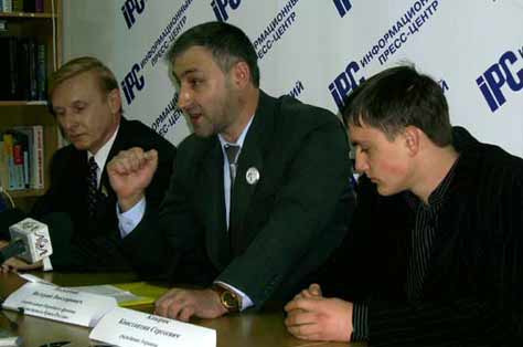 16 с╕чня у прим╕щенн╕ ╤нформац╕йного прес-центру в С╕мферопол╕ в╕дбулася прес-конференц╕я «Спроби вит╕снення Чорноморського флоту з Криму як фактор консол╕дац╕╖ пророс╕йських сил на п╕востров╕». ╥╖ проводили: В. Под’ячий - координатор народного фронту «Севастополь-Крим-Рос╕я» (на фото - у центр╕), В. Тюн╕н - голова громадського об’╓днання «За ╓дину Русь» (л╕воруч), та поки що (за словами В. Под’ячого) «громадянин Укра╖ни» К. Книр╕к (праворуч) - колишн╕й л╕дер забороненого в судовому порядку сумнозв╕сного ╢враз╕йського союзу молод╕. Все почалося н╕би цив╕л╕зовано: «кримрос╕йц╕» процитували витяг з «Угоди про створення коал╕ц╕╖ демократичних сил у Верховн╕й Рад╕ Укра╖ни VI скликання», пообурювалися тим, що у н╕й говориться про дотримання ╖╖ учасниками закр╕пленого чинним законодавством Укра╖ни зовн╕шньопол╕тичного курсу, який включа╓ в себе стратег╕чн╕ ц╕л╕ ╓вропейсько╖ ╕нтеграц╕╖. То й на здоров`я! Це ж добре, коли кожен громадянин в держав╕ може мати ╕ в╕льно висловлювати сво╖ погляди (у матушц╕-Рос╕╖ з цим, зда╓ться, трохи не так...). Але коли з уст координатора «Севастополя-Криму-Рос╕╖» В. Под’ячого прозвучала фраза: «Сейчас проамериканский НЕОФАШИСТСКИЙ (!) режим пытается установить на Украине репрессивную диктатуру для реализации атлантистского внешнеполитического курса», - стало зрозум╕ло, що витрачати нерви сво╖ ╕ читацьк╕, пап╕р ╕ час на описування-коментування ц╕╓╖ печерно╖ антиукра╖нщини (згадайте про паплюження такою ж компан╕╓ю державних символ╕в на Говерл╕) просто нема╓ сенсу: цими викопними «кроманьйонськими хлопчиками» в╕д пол╕тики ма╓, зрештою, серйозно займатися якщо не СБУ, то, принаймн╕, квал╕ф╕кований псих╕атр. Тому пода╓мо лише колективне фото цих «любих друз╕в» нашо╖ надто вже терплячо╖ держави: ╖╖ «геро╖в», як ╕ «антигеро╖в», потр╕бно знати в обличчя - ╕ не т╕льки псих╕атрам та спецслужбам, але й ус╕м нам: а раптом трапиться хтось поноч╕ в безлюдному провулку, ╕ м╕л╕ц╕я буде далеко, ╕ Москва, ╕ т╕кати йому буде н╕куди? Не ображайте хворих, земляки! ╤нф. «КС». (Фото Олекс╕я Носаненка).