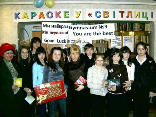 Минуло╖ п`ятниц╕ наша «Св╕тлиця» брин╕ла дитячими голосочками - кращ╕ вокал╕сти с╕мферопольсько╖ г╕мназ╕╖ №9 на чол╕ з╕ сво╖м невтомним «диригентом» - учителькою укра╖нсько╖ мови та л╕тератури Наталею Ярослав╕вною Василь╓вою утверджували сво╓ чемп╕онство в укра╖нському караоке. Сп╕вали так, що ╖хн╕ суперники з Укра╖нсько╖ г╕мназ╕╖, котр╕ заздалег╕дь зголосилися позмагатися на п╕сенному рингу, напевне, ще з вулиц╕ почувши оте дзв╕нкоголосся, просто побоялися заходити до редакц╕╖ (тож за неспортивну повед╕нку, вибачайте, ма╓те техн╕чну поразку).
