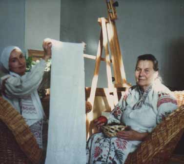 Будучи куратором виставки «Вишивка: традиц╕╖ ╕ сучасн╕сть», з великою рад╕стю запрошую вас подивитися ╕ частину мо╓╖ етнограф╕чно╖ колекц╕╖ - «Мистецтво укра╖нсько╖ народно╖ вишивки». Етнограф╕╓ю я зац╕кавилася на 1-му курс╕ Харк╕всько╖ академ╕╖ дизайну ╕ мистецтв, тод╕ ж, у студентськ╕ роки, з’явилися ╕ перш╕ експонати мо╓╖ майбутньо╖ колекц╕╖. Через к╕лька рок╕в я вийшла зам╕ж за художника Миколу Муравського, родом з Житомирщини ╕ вв╕йшла у велику ╕ дружну укра╖нську родину, де з покол╕ння в покол╕ння переда╓ться майстерн╕сть ткацтва, вишивки, сп╕ву, де н╕коли не зника╓ прагнення до всього прекрасного у житт╕ й у побут╕. У родин╕ ус╕ ж╕нки вишивали, а д╕дусь чолов╕ка, Шуляр З╕нов╕й Андр╕йович був ткачем. Його вироби, створен╕ в 30-40-в╕ роки ХХ ст. на ручному ткацькому верстат╕, дотепер радують сво╖ми р╕знобарв’ям. Нитки для ткацтва ╕ вишивки прялися вручну з льону ╕ конопл╕, фарбувалися барвниками - соками рослин з листя, кв╕т╕в, кори ╕ корен╕в. Для закр╕плення кольору н