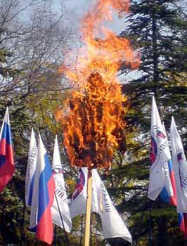 У в╕второк, 4 листопада, з приводу рос╕йського свята Дня народно╖ ╓дност╕ у С╕мферопол╕ пройшов так званий «Русский марш» (до реч╕, також заборонений м╕сцевим судом). ╤н╕ц╕атором проведення заходу стали «Русская община Крыма» ╕ парт╕я «Русский блок». Близько 250 чолов╕к провели молебень у храм╕ Петра ╕ Павла, п╕сля чого пройшли вулицями С╕мферополя до закладного каменя на м╕сц╕ майбутнього буд╕вництва пам’ятника рос╕йськ╕й ╕мператриц╕ Катерин╕ II. Тут же був орган╕зований м╕тинг, присвячений захисту прав рос╕йського населення Криму. Присутн╕ тримали парт╕йн╕ прапори, а також плакати з лозунгами: «Крымчане! Ударим тарелкой (спутниковой) по чайникам из Нацрады!», «Мы — наследники великой победы! Бандеро-фашисты и натовцы в Крым не пройдут!», «Закон — один для всех!», «Нет распределению земли по национальному признаку!». П╕д к╕нець було спалено опудало ╕з зображенням голови Нац╕онально╖ ради Укра╖ни з питань телебачення ╕ рад╕омовлення В╕тал╕я Шевченка. (Цього року у С╕мферопол╕ так само було «л╕нчовано» «макет» м╕н╕стра осв╕ти ╕ науки Укра╖ни ╤. Вакарчука). На опудал╕ вис╕ла табличка «Чиновник-русофоб». Таким чином м╕тингувальники висловили св╕й протест проти недавнього р╕шення Нацради заборонити операторам кабельного телебачення вести ретрансляц╕ю неадаптованих до укра╖нського законодавства заруб╕жних канал╕в. (http://24.ua)