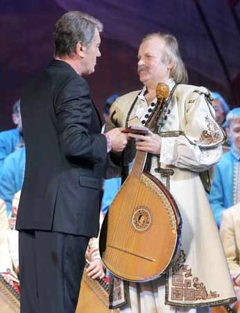 За вагомий внесок у розвиток укра╖нсько╖ культури, популяризац╕ю кобзарства та бандурного мистецтва Президент нагородив в╕домих кобзар╕в ╕ бандурист╕в.
