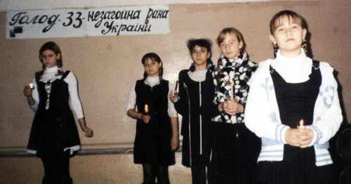 То був страшенний злочин, такого ще земля не знала. Народна пам’ять – найдостов╕рн╕ше ╕сторичне джерело минулого. Кажуть, що ╕стор╕╖ властиво повторюватися. Наше завдання зробити так, щоб кожен пам’ятав про невинн╕ жертви, м╕льйони замучених людей - Бабин╕ Яри по Укра╖н╕. Настане час – розкопають от╕ вс╕ могили ╕ заплаче Укра╖на, як мала дитина. Невесело було ╕ в нашому сел╕. Палили Св╕чку пам’ят╕ ╕ в наш╕й школ╕. У зал╕ стало тихо… Дал╕ виступали д╕ти. Списки замучених читали по черз╕, ╕ розпов╕дали про те, якими були останн╕ хвилини життя людей, безвинно загублених Голодомором.