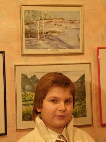 На фото О. Носаненка - юний художник Сашко Опришко ╕ його роботи.