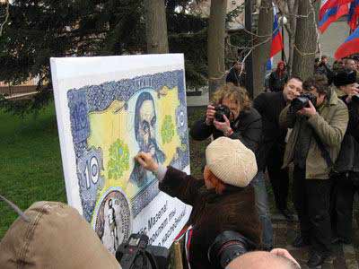 Учасники м╕тингу в С╕мферопол╕ на знак протесту проти святкування в Укра╖н╕ 370-╖ р╕чниц╕ в╕д дня народження гетьмана ╤вана Мазепи закидали курячими яйцями його портрет. Як переда╓ кореспондент УН╤АН, в акц╕╖, яка в╕дбулася перед буд╕влею Представництва Президента Укра╖ни в Криму, за даними м╕л╕ц╕╖, взяли участь близько 100 чолов╕к – актив╕сти Рос╕йсько╖ громади Криму ╕ парт╕╖ «Рос╕йський блок». Вони назвали Мазепу зрадником рос╕йського народу ╕ висловили обурення святкуванням в Укра╖н╕ його дня народження. «На жаль, ми живемо у такий час, коли святкуються дн╕ народження Бандери, Мазепи, Петлюри. Верховна Рада Укра╖ни визначила (дати) святковими, а день перемоги радянського народу у Велик╕й В╕тчизнян╕й в╕йн╕ вони не внесли в почесн╕ дати», – зазначив депутат кримського парламенту Анатол╕й Жил╕н. Учасники м╕тингу тримали прапори Рос╕╖, Криму, портрети Президента РФ Дмитра Медвед╓ва, прем’╓ра РФ Володимира Пут╕на, а також Петра I, транспаранти: «Майбутн╓ Укра╖ни – у союз╕ з Рос╕╓ю!», «Спадко╓мц╕ Мазепи: Кравчук, Кучма, Ющенко». П╕д час акц╕╖ звучали г╕мн Рос╕йсько╖ ╕мпер╕╖ 1833-1917 рр. «Боже, царя бережи!» ╕ «Марш нескореного Криму». Актор, який виконував роль священика, зробив на м╕тингу «обряд анафеми» Мазеп╕, а молодь закидала яйцями великий плакат ╕з зображенням «мазеповки» – купюри в 10 гривень з портретом Мазепи.