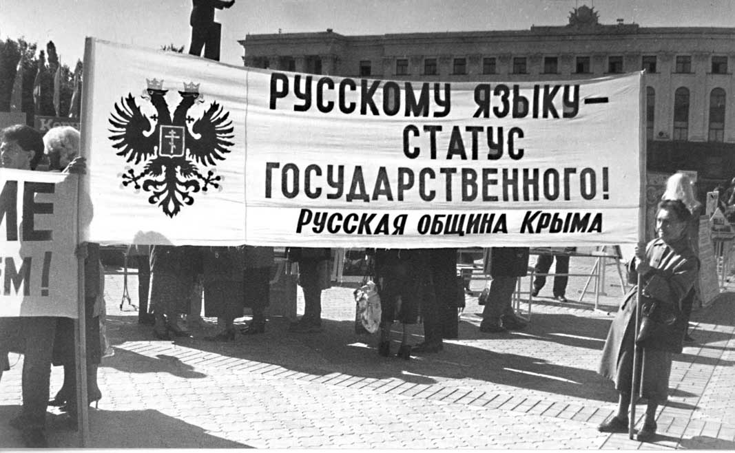 Гучним (читайте ці плакати!), хоча і нечисленним, пікетом в центрі Сімферополя відзначила День вчителя "Русская община Крыма". На фоні пам'ятника "вічно живому" такі ж "вічні" заклики проти "насильницької українізації" та про надання державного статусу російській мові надавали цьому заходу в святковий освітянський день особливої "урочистості". Адже захисники "великого и могучего языка" нещодавно знайшли потужну підтримку не тільки з боку власної фракції РДК, а й майже всієї Верховної Ради автономії.