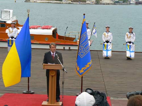 5 липня в Севастопол╕, у святкуванн╕ Дня флоту Укра╖ни взяв участь Президент Укра╖ни В╕ктор Ющенко. Глава держави поклав кв╕ти до Мемор╕алу захисник╕в Севастополя та до пам’ятника флотоводцю П. Нах╕мову. У церемон╕╖ взяли участь представники Секретар╕ату Президента, кер╕вництва М╕н╕стерства оборони, командування ВМС ЗС Укра╖ни, кер╕вництва м╕ста, шефських делегац╕й рег╕он╕в держави, духовенства, громадськост╕.