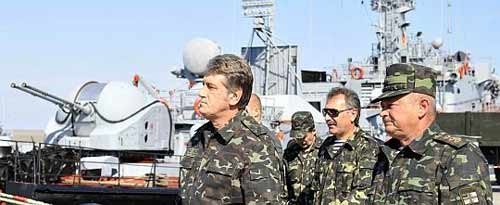 На П╕вденн╕й в╕йськово-морськ╕й баз╕ ВМС ЗСУ в Криму Президент Укра╖ни – Верховний Головнокомандувач Збройних Сил В╕ктор Ющенко 8 жовтня в╕дв╕дав тактичн╕ навчання В╕йськово-Морських Сил нашо╖ арм╕╖. На навчаннях були присутн╕ Начальник Генерального штабу — Головнокомандувач Збройних Сил Укра╖ни Серг╕й Кириченко, Командувач В╕йськово-Морських Сил Збройних Сил Укра╖ни ╤гор Тенюх, Перший заступник Глави Секретар╕ату Президента Юр╕й ╢хануров. На морському десантному пол╕гон╕ бази, що на озер╕ Донузлав поблизу смт. Новоозерне п╕д ╢впатор╕╓ю, В. Ющенко зокрема спостер╕гав за д╕ями п╕дрозд╕л╕в спецпризначення, в╕йськ берегово╖ оборони та морсько╖ ав╕ац╕╖, як╕ виконували завдання за призначенням у вза╓мод╕╖ з арм╕йською ав╕ац╕╓ю Сухопутних в╕йськ та винищувальною ав╕ац╕╓ю Пов╕тряних Сил. Верховний Головнокомандувач також мав змогу побачити пошуково-рятувальн╕ роботи на мор╕. Глава держави, кр╕м того, ознайомився з орган╕зац╕╓ю матер╕ально-техн╕чного забезпечення плавскладу В╕йськово-Морських Сил Укра╖ни. В. Ющенко спостер╕гав за завантаженням протикорабельних крилатих ракет «Терм╕т», торпед СЕТ-65 та зен╕тних керованих ракет 9М-33М «Оса» на корвети нашого флоту. В╕н також мав змогу побачити процес завантаження м╕нного бо╓запасу та пального на морськ╕ тральщики. Президент, кр╕м того, ознайомився з ходом розробки в╕тчизняного корабля класу «корвет» та безпосередньо процесом створення базового корабля ВМС ЗСУ цього класу. Верховний Головнокомандувач ЗСУ вручив пам’ятн╕ подарунки кращим учасникам тактичних навчань В╕йськово-Морських Сил. В ╕нтерв’ю журнал╕стам Президент високо оц╕нив продемонстрований у ход╕ тактичних та тактично-спец╕альних навчань профес╕йний р╕вень в╕йськовослужбовц╕в. За його словами, в╕йськов╕ моряки ╕ представники ╕нших род╕в в╕йськ показали виняткову ефективн╕сть вза╓мод╕╖ при вир╕шенн╕ бойових завдань. «Сьогодн╕шн╕ навчання проведен╕ блискуче», — наголосив В. Ющенко. В╕н п╕дкреслив, що в╕йськовослужбовц╕ д╕яли у прекрасн╕й координац╕╖ на р╕вн╕ бойових обставин. «Навчання засв╕дчують, що укра╖нське в╕йсько ма╓ високий ступ╕нь профес╕йно╖ п╕дготовки, високий патр╕отизм та дух», — сказав Президент. Водночас в╕н наголосив — сьогодн╕ сусп╕льство та влада мають ч╕тко усв╕домлювати, що саме арм╕я виступа╓ гарантом нашо╖ територ╕ально╖ ц╕л╕сност╕ та незалежност╕. «Виховання, п╕дготовка, розвиток арм╕╖ — це ключов╕ реч╕, про як╕ ми пост╕йно говоримо з кер╕вництвом Генштабу та М╕н╕стерства оборони», — сказав Президент. В╕н висловив переконання, що сьогодн╕ ЗСУ як н╕коли потребують вс╕ляко╖ п╕дтримки. Арм╕я ╕ флот ╕з повною в╕дпов╕дальн╕стю п╕дходять до виконання свого конституц╕йного обов’язку перед Укра╖нським народом, переконаний В. Ющенко. У навчаннях взяли участь 1225 ос╕б, було зад╕яно 5 корабл╕в, 15 л╕так╕в та вертольот╕в, 89 одиниць авто-, броне— та спецтехн╕ки. http://www.president.gov.ua/