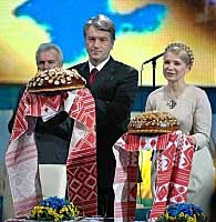 На фото: Президент Укра╖ни В╕ктор Ющенко та Прем’╓р-м╕н╕стр Юл╕я Тимошенко п╕д час урочистостей з нагоди святкування Дня прац╕вник╕в с╕льського господарства.