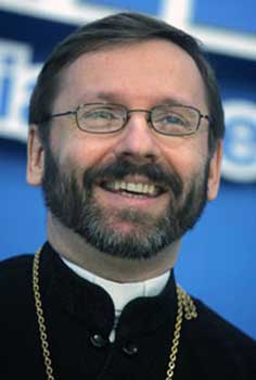 Дорога до Храму Глава УГКЦ Блаженн╕йший Святослав:ЯК ПРОТИСТОЯТИ РОС╤ЙСЬКОМУ СВ╤ТУ? ДУЖЕ ПРОСТО – БУДУВАТИ УКРА╥НСЬКИЙ! В УН╤АН глава УГКЦ Блаженн╕йший Святослав дав свою першу прес-конференц╕ю. На н╕й в╕н розпов╕в про пр╕оритети церкви на найближч╕ десять рок╕в. ВВАЖАЮ ЗА ЧЕСТЬ ПРОДОВЖУВАТИ СПРАВУ БЛАЖЕНН╤ЙШОГО ЛЮБОМИРА Якщо хтось оч╕кував почути, скаж╕мо, критичн╕ закиди щодо Московського патр╕архату чи сьогодн╕шньо╖ влади – помилився, адже, як наголошу╓ Блаженн╕йший Святослав, в╕н продовжуватиме засади керування церквою, що заклав кардинал Любомир Гузар. Сам╕ священики УГКЦ манеру сп╕лкування свого глави називають дуже близькою до манери сп╕лкування Папи ╤вана Павла ╤╤. Новий предстоятель церкви може говорити про серйозн╕ реч╕ з усм╕шкою, жартуючи, але вони зовс╕м не сприйматимуться як несерйозн╕. Священики, що ран╕ше працювали з Святославом Шевчуком, в╕дзначають його «твердий хребет»… – Я вважаю сво╓ю честю продовжувати все те, що Блаженн╕йший Любомир започаткував: почав будувати чи заклав фундамент, - сказав новий глава УГКЦ. В╕н виклав свою стратег╕ю у трьох пунктах: “Перший – це наша душпастирська чи ╓вангел╕зац╕йна д╕яльн╕сть. Це питання пропов╕д╕ церковного слова, тобто, ми хочемо бути собою, справд╕ живою Христовою церквою, яка ма╓ на мет╕ донести ╓вангельську благов╕сть до кожно╖ людини, до яко╖ нас посила╓ Господь”. “Ще одна важлива складова, – продовжу╓ в╕н, – молод╕жна пол╕тика. Молодь шука╓ в╕дпов╕д╕ на конкретн╕ питання, як╕ сьогодн╕ ╖х турбують. Ще одне питання – осв╕ти ╕ виховання майбутнього духовенства. Важливим ╓ також питання ╕нкультурац╕╖. В Аргентин╕ часто пропов╕дував ╕спанською мовою, перекладаючи на ╕спанську мову традиц╕йн╕ грецьк╕, старослов’янськ╕ вислови чи фрази. Те саме стосу╓ться ╕ Укра╖ни, бо, гадаю, сучасна укра╖нська людина дуже часто не розум╕╓ старих сл╕в, заяложених, як╕ треба по-новому для ц╕╓╖ людини представляти. Один хлопчина з пров╕нц╕╖ М╕с╕онес мен╕ сказав так: «Зна╓те, владико, якщо церква ╓ музей, який дуже гарно збер╕га╓ культурн╕ експонати минулого, ну, туди можна прийти раз на р╕к, як ╕ в кожен ╕нший музей, але жити в музе╖… Ну, це вже вибачте». Тож, ми хочемо, щоб наша церква була живою. Друга група стратег╕чних напрям╕в – це питання адм╕н╕страц╕╖. “Ми тепер вивча╓мо досв╕д сучасного менеджменту, у який спос╕б бути найб╕льш ефективними, але водночас найдешевшими. Тобто, щоб зробити найб╕льше прац╕, але найменшим коштом. Ще одна складова – питання географ╕╖. …У певних рег╕онах св╕ту ми вже ма╓мо сво╖ структури, де можемо оп╕куватися нашими в╕рними. Недавно стало в╕домо, що наш╕ в╕рн╕ ╓ також у П╕вденн╕й Африц╕. Пот╕м соб╕ дума╓мо: Господи, а де наш╕ в╕рн╕ будуть ще за десять рок╕в… Тобто, нам треба готуватися до процес╕в глобал╕зац╕╖». П╕сля викладення сво╓╖ стратег╕╖, глава УГКЦ в╕дпов╕в на запитання журнал╕ст╕в, а також дав коротке ╕нтерв’ю УН╤АН. «Я ПОВАЖАЮ ПРЕЗИДЕНТА ╤ СПОД╤ВАЮСЯ, В╤Н ПОВАЖАТИМЕ МЕНЕ...» - Блаженн╕йший, н╕ для кого не секрет, що УГКЦ прагне мати власний патр╕архат, ╕ ми зна╓мо, що ви сьогодн╕ ╖дете до Риму. Чи говоритимете про це з Папою ╕ що в цьому напрямку буде зроблено? - Так, нашим обов’язком ╓ скласти в╕зит вв╕чливост╕ до Свят╕йшого Отця, з одного 
