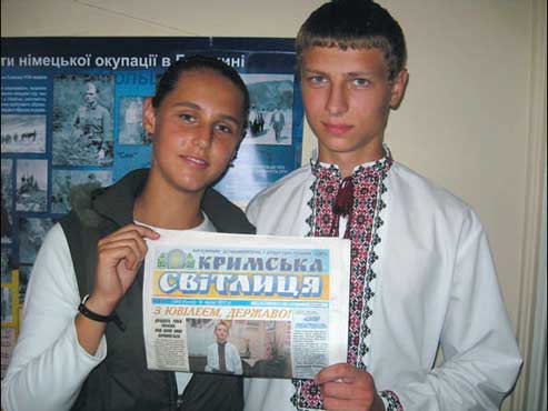 На фото: льв╕вськ╕ старшокласники, члени «Учн╕вського братства» В╕тал╕й ╤ванов та Уляна Ковальчук цього л╕та брали активну участь в акц╕╖ на мис╕ Сарич з метою повернути Укра╖н╕ ╖╖ маяки, захоплен╕ моряками сус╕дньо╖ держави. Так ╕ познайомилися з «Кримською св╕тлицею»!