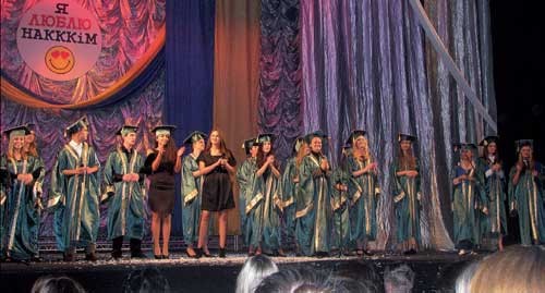 П╕сля цих напутн╕х сл╕в першокурсникам вручили символ╕чн╕ студентський квиток та зал╕кову книжку. ╤ ось вальсом Штрауса у виконанн╕ студент╕в кафедри хореограф╕╖ розпочина╓ться святковий концерт. Кафедру естрадного виконавства представили Олександр╕на Чертовських, Рузана Агаджанова з чудовою танцювальною постановкою театру-студ╕╖ «Коло», Ярослав Кваша та Ольга Хареба. Показали сво╖ святков╕ номери студенти ╕нститут╕в мистецтв, ╕нформац╕йно╖ д╕яльност╕ та соц╕альних комун╕кац╕й, дизайну та ландшафтного мистецтва, менеджменту. Подарував глядачам сво╖ п╕сн╕ народний артист Укра╖ни, сол╕ст Нац╕онально╖ опери Укра╖ни Олександр Гурець. Глядачам дуже сподобалась сво╓ю запальною енергетикою «Молдавська хора» у виконанн╕ студентки кафедри естрадного мистецтва Олени Боброво╖ та танцювальний номер студент╕в кафедри хореограф╕╖ «Солярис». Завершив концерт зведений ансамбль кафедри мистецьких технолог╕й та естрадного виконавства п╕д кер╕вництвом заслуженого д╕яча мистецтв Укра╖ни Людмили Бурм╕цько╖. Першокурсники проголосили клятву студента — високо нести прапор гуман╕зму, незм╕нно прагнути п╕знавати ╕стину, бути в╕рним сином сво╓╖ альма-матер, п╕дтримувати вогонь молодо╖ завзятост╕, добра, людяност╕, над╕╖ та любов╕, сво╖ ╕деали, енерг╕ю ╕ творчий потенц╕ал в╕ддати на розбудову демократично╖ Укра╖ни. На запитання, що ж потр╕бно робити студентам для того, щоб досягти усп╕х╕в, головний режисер посвяти, народний артист Укра╖ни, професор кафедри режисури НАККК╕М Дмитро Мухарський в╕дпов╕в словами… Володимира ╤лл╕ча Лен╕на — «учитися, учитися ╕ ще раз учитися, т╕льки знання можуть п╕дняти вас над буденн╕стю, щоб не було в душ╕, у серц╕ порожньо, а значить, ╕ порожнього мистецтва, яке, на жаль, зараз б╕льш╕сть демонстру╓. А наполеглив╕сть ╕ праця все подолають». Директор ╕нституту мистецтв, кандидат ╕сторичних наук В╕олетта Демещенко дала сво╖ настанови першокурсникам: «Потр╕бно д╕йсно любити ту спец╕альн╕сть, яку обрав, поважати себе, поважати сво╖х викладач╕в, наставник╕в, пост╕йно працювати над собою, не в╕дмовлятися в╕д сво╖х мр╕й. Коли людина не зраджу╓ себе ╕ йде по життю, плануючи сво╖ кроки для досягнення сво╓╖ мети, мр╕╖ обов’язково зд╕йснюються. Треба розвивати в соб╕ наполеглив╕сть, бажання працювати, не зупинятися, нав╕ть коли досягнув уже якихось усп╕х╕в. Мистецьк╕ обр╕╖, як горизонт, мають в╕чно вабити за собою!» Посп╕лкувавшись за кул╕сами з першокурсниками р╕зних факультет╕в ╕ спец╕альностей, я зробила висновок, що загалом вони задоволен╕ навчанням в академ╕╖. По-перше, в╕дзначали майже ус╕ студенти, — це м╕сцезнаходження НАККК╕М. Адже основн╕ корпуси розташовано на територ╕╖ Ки╓во-Печерсько╖ лаври. Нав╕ть можлив╕сть просто прогулятися цими святими м╕сцями, помолитися, почути Лаврськ╕ дзвони, поринути у давнину в╕к╕в да╓ таку наснагу до життя ╕ до навчання! По-друге, потужний викладацький колектив, який склада╓ться ╕з заслужених, народних артист╕в, академ╕к╕в, професор╕в, лауреат╕в державних прем╕й — цим людям справд╕ ╓ чим под╕литися з╕ студентами. Занепоко╓н╕ першокурсники, як╕ при╖хали до столиц╕ з р╕зних куточк╕в Укра╖ни, може, лише перенаповнен╕стю та станом гуртожитк╕в. «Хот╕лося б б╕льше с