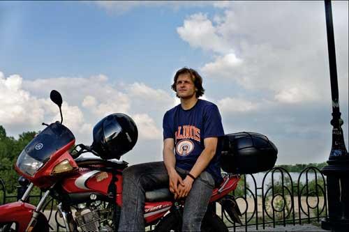 — Я також так вважаю. До реч╕, ми вже к╕лька раз╕в писали про мандр╕вника автостопом Олександра Волощука з Черн╕гова. В╕н бував у редакц╕╖ «Кримсько╖ св╕тлиц╕». Хочу запитати вас: чим в╕др╕зняються мандр╕вки на мотоцикл╕ в╕д автостопу?