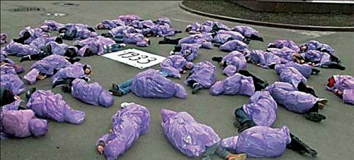 У Луцьку, на площ╕ перед головним корпусом Волинського нац╕онального ун╕верситету ╕м. Лес╕ Укра╖нки, в╕дбувся флеш-моб «1933 р╕к в одн╕й хвилин╕», присвячений вшануванню пам’ят╕ жертв Голодомору. Як пов╕домили у ВМГО «Нац╕ональний Альянс», ц╕╓ю акц╕╓ю учасники спробували в╕дтворити весь жах траг╕чних под╕й 1932-1933 рок╕в. За р╕зними даними, п╕д час Голодомору в Укра╖н╕ протягом хвилини помирало 17-25 людей. Актив╕сти також нагадали, що зг╕дно з оф╕ц╕йними даними СБУ за 2009 р., к╕льк╕сть людських втрат Укра╖ни в╕д Голодомору 1932-1933 рр. склада╓ 10 м╕льйон╕в 63 тисяч╕ ос╕б. Коли п╕д важк╕ удари дзвону зачитувалися статистичн╕ дан╕ людських втрат, учасники, в пам’ять про м╕льйони полеглих, невеликими групами падали на асфальт. П╕сля завершення акц╕╖ кожен учасник сипнув жменьку зерна на полотно з написом дат рок╕в Голодомору. «Зараз це зерно вже н╕чим не допоможе м╕льйонам укра╖нц╕в, полеглих в╕д Голодомору. Тому пам’ять — це найменше, що залишилось як знак того, що було, та того, що не можна допустити в майбутньому», — в╕дзначили у «Нацальянс╕». Сл╕д зауважити, що акц╕я в╕дбулася в рамках всеукра╖нсько╖ кампан╕╖ з в╕дзначення 78-х роковин Голодомору 1932-1933 рр. в Укра╖н╕. Орган╕затором заходу виступив Волинський громадський ком╕тет ╕з вшанування пам’ят╕ жертв Голодомору-геноциду 1932-1933 рок╕в в Укра╖н╕. Флеш-моб в╕дбувся за участ╕ 50 актив╕ст╕в молод╕жних громадських орган╕зац╕й Луцька.