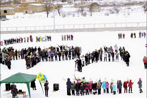 У С╕мферопол╕ минуло╖ п’ятниц╕ учн╕ м╕сцево╖ Укра╖нсько╖ г╕мназ╕╖ провели флеш-моб, присвячений Дню соборност╕ Укра╖ни. П╕д час велико╖ перерви к╕лька сотень г╕мназист╕в вишикувалися на шк╕льному стад╕он╕ групами ╕ створили слово «Укра╖на», яке добре було видно з висоти. В акц╕╖ взяли участь як старшокласники, так ╕ молодш╕ школяр╕. Лунали укра╖нськ╕ п╕сн╕, г╕мназисти скандували «Укра╖на! Незалежн╕сть! Соборн╕сть!», кожен клас п╕дготував патр╕отичн╕ реч╕вки. Директор Укра╖нсько╖ г╕мназ╕╖ Наталя Руденко пов╕домила, що адм╕н╕страц╕я ╕ вчител╕ школи не стримували дитячо╖ фантаз╕╖ п╕д час п╕дготовки до акц╕╖ (див. фото!), тож вийшла вона яскравою, барвистою, веселою ╕ запам'ята╓ться надовго!