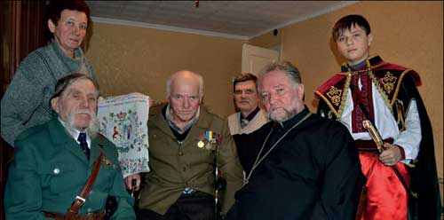 На фото (зл╕ва направо): донька повстанця Катерина ╕з рушником, якого вишивала мама, Андр╕й Сухий, Хасман Мандик, Анатол╕й Троцюк, о. Михайло Нискогуз, Роман Горчаковський