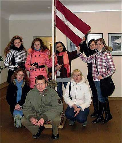 Льв╕вськ╕ «балтисти» з прапором Латв╕╖