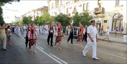З 15 до 17 червня у Севастопол╕ пройшов трет╕й фестиваль в╕йськових оркестр╕в «Sevastopol Military Tattoо». Така назва фестивалю означа╓ в╕льну подачу музичних твор╕в з легкою, витонченою часткою пустощ╕в. Протягом трьох дн╕в севастопольц╕ та гост╕ м╕ста мали щасливу нагоду споглядати парадну ходу оркестр╕в центральними вулицями м╕ста, шоу трубач╕в ╕ барабанщик╕в, концерти класично╖ та джазово╖ музики п╕д в╕дкритим небом на Приморському бульвар╕, Графськ╕й пристан╕, у Нац╕ональному запов╕днику «Херсонес Тавр╕йський» й, нарешт╕, гранд-деф╕ле на Кришталевому мис╕. Фестиваль в╕домий далеко за межами Укра╖ни й за три роки став нев╕д’╓мною частиною культурного життя Севастополя. Його учасники: Зразково-показовий оркестр Збройних Сил Укра╖ни Цей творчий колектив, заснований ще у 1945 роц╕, пройшов довгий шлях в╕д оркестру штабу Ки╖вського в╕йськового округу до нин╕шнього почесного статусу — музичного символу Збройних Сил Укра╖ни. Оркестр працював над новою редакц╕╓ю Г╕мну Укра╖ни й першим виконав його. Начальник оркестру — художн╕й кер╕вник, п╕дполковник ╤гор Биковський, заступник начальника оркестру — майор Максим Гусак, в╕йськовий диригент — кап╕тан Борис Школовий. Головний в╕йськовий диригент Генерального штабу Збройних Сил Укра╖ни — полковник В╕ктор Пащенко. В╕йськовий оркестр Центру в╕йськово-музичного мистецтва ВМС ЗС Укра╖ни Цей молодий творчий колектив заснований у 2008 роц╕, проте вже встиг помандрувати св╕том, лауреат арм╕йського фестивалю «Червона калина», з╕брав чимало нагород на м╕жнародних фестивалях. Виступав у Н╕меччин╕, Н╕дерландах, Туреччин╕, проводив концерти п╕д час дружн╕х в╕зит╕в у портах ╢вропи та Америки. Начальник — заслужений артист Укра╖ни, кап╕тан 2 рангу Андр╕й Висовень. 34-й в╕йськовий оркестр Чорноморського флоту Рос╕╖ Творчий колектив — посл╕довник флотських традиц╕й Севастополя. Заснований у 1967 роц╕, в╕н залиша╓ться в╕рним м╕сту-герою. Музиканти цього в╕йськового оркестру пост╕йно беруть участь у м╕ських святах та парадах, виходять в море разом з кораблями Чорноморського флоту Рос╕╖, проводять концерти за кордоном. У творчому колектив╕ 20 музикант╕в. Начальник оркестру — в╕йськовий диригент, лейтенант Артем Сал╕мов. Оркестр Республ╕кансько╖ гвард╕╖ Алжиру Перебуваючи у склад╕ Нац╕онального кавалер╕йського п╕дрозд╕лу, в╕домого ще як Республ╕канська гвард╕я («Харас Джумхур╕»), оркестр по╓дну╓ в╕йськово-музичн╕ та культурн╕ традиц╕╖ ╢вропи з яскравою екзотикою Африканського континенту. У форм╕ оркестрант╕в переважають нац╕ональн╕ кольори: червона сорочка, зелен╕ брюки та б╕лий плащ-бурнус. До обов’язкових атрибут╕в колоритного обмундирування оркестрант╕в також належать б╕л╕ шапки з гербом алжирсько╖ кавалер╕╖ та меч╕. Г╕мн Алжиру «Qassaman» у виконанн╕ музикант╕в «Харас Джумхур╕» справля╓ незабутн╓ враження. Кер╕вник оркестру — ад’ютант Абдельрахман Хамард. Оркестр 9-╖ бронетанково╖ бригади морсько╖ п╕хоти з Пуать╓ (Франц╕я) Оркестр створений у 50-х роках минулого стол╕ття, проте голуб╕ мундири з вишитими на них золотими якорями нагадують форму див╕з╕╖, що прославилася у боях п╕д Базелем у 1870 роц╕. Оркестр дислокований у м. Пуать╓. З поточного року до складу оркестру ув╕йшли волинщики. Ун╕кальний для в