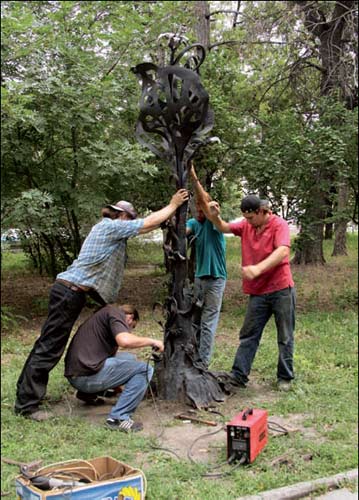 ╢ у С╕мферопол╕ ун╕кальний сквер, який ╕з завидною регулярн╕стю стражда╓ в╕д рук вандал╕в. Це сквер ╕мен╕ Дибенка, б╕льше в╕домий як сквер кованих скульптур. У н╕ч на 10 липня нев╕дом╕ знову пошкодили 12 ф╕гур, як╕ були подарован╕ м╕сту ковалями. Як розпов╕в глава стар╕йшин «Г╕льд╕╖ ковал╕в «Нащадки Сварога», член правл╕ння Сп╕лки майстр╕в ковальського мистецтва Укра╖ни Олег Миколайович Криворученко, про безчинства вандал╕в ковалям пов╕домили жител╕ С╕мферополя. При╖хавши на м╕сце, вони побачили жахливу картину н╕чного глумл╕ння над скульптурами: в одних було виламано др╕бн╕ детал╕, ╕нш╕ вивернули ╕з земл╕ «з кор╕нням». За словами пана Криворученка, оч╕льники м╕ста, як ╕ ран╕ше, не хочуть ставити на баланс скульптури в одному з центральних сквер╕в столиц╕. «Це майно належить нам, кримчанам. Але державн╕ структури не хочуть за них нести в╕дпов╕дальн╕сть. Проте у нас ще ╓ роботи, ╕ ми будемо ╖х встановлювати», — пов╕домив Олег Миколайович. У п’ятницю, 13 липня, Кримське в╕дд╕лення Сп╕лки майстр╕в ковальського мистецтва майже у повному склад╕ заходилося лагодити пон╕вечен╕ скульптури. Майже кожному з них ми поставили одне й те ж запитання: «Чи не пропало у вас бажання творити для с╕мферопольц╕в ╕ гостей м╕ста красу?» Однак ус╕ одноголосно в╕дпов╕ли, що н╕, навпаки, ще з б╕льшою завзят╕стю створюватимуть скульптури, що радуватимуть кримчан. А вандалам, у яких руки чухаються, Олег Миколайович хоче встановити пам’ятник. «╤ хай спробують зламати пам’ятник самим соб╕», — посм╕хнувся пан Олег. Коли вже було написано цю зам╕тку, стало в╕домо, що сп╕вроб╕тниками Центрального районного в╕дд╕лу м╕л╕ц╕╖ С╕мферополя ведеться сл╕дство за фактом пошкодження кованих скульптур, що знаходяться в сквер╕ ╕м. Дибенка в С╕мферопол╕. На даний момент порушено крим╕нальну справу за ч. 2 ст. 296 Крим╕нального кодексу Укра╖ни — хул╕ганство. Зг╕дно з пов╕домленням кримського главку МВС, цей факт заре╓стрований в установленому законом порядку. Проводиться ряд заход╕в, спрямованих на встановлення ╕ затримання ос╕б, як╕ вчинили протиправн╕ д╕╖. У той же час, за даними м╕л╕ц╕╖, за цим фактом заяв ╕ пов╕домлень до орган╕в внутр╕шн╕х справ С╕мферополя не надходило.