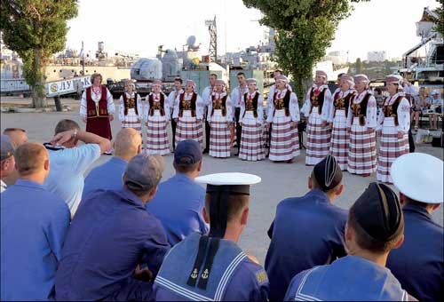 На День флоту Укра╖ни, який в╕дзначався минуло╖ нед╕л╕, у Севастопол╕ з концертними виступами побував народний аматорський ансамбль народно╖ п╕сн╕ «Родов╕д» з м╕ста Кам╕нь-Каширська Волинсько╖ област╕. За словами його кер╕вника Людмили Довгун, творчому колективу вже 25 рок╕в, к╕льк╕сть учасник╕в — 30 чолов╕к, у репертуар╕ близько сотн╕ народних п╕сень та авторських твор╕в волинян. В ансамбл╕ — люди р╕зного в╕ку в╕д 22 до 59 рок╕в, р╕зних профес╕й — ╓ вчител╕, виховател╕ дошк╕льних заклад╕в, прац╕вники культури, п╕дпри╓мц╕. Вс╕х об’╓дну╓ любов до п╕сн╕, можлив╕сть передати слухачам рад╕сть, щир╕сть ╕ сердечне тепло. «Родов╕д» виступав у Луцьку та районних центрах, на Льв╕вщин╕, в Б╕лорус╕, в столичному палац╕ «Укра╖на» на творчому зв╕т╕ Волинсько╖ област╕ ╕ ╓ лауреатом багатьох конкурс╕в. У Севастопол╕ волиняни всьоме ╕ охоче виступають п╕д час фестивалю «Дзвени п╕снями, моя земля!», у в╕йськових частинах. Зустр╕ч ╕з моряками корвету «Луцьк» в╕дбулася з ╕н╕ц╕ативи ╕ вагомого внеску голови Волинсько╖ обласно╖ державно╖ адм╕н╕страц╕╖ Бориса Кл╕мчука, розпов╕да╓ начальник в╕дд╕лу вза╓мод╕╖ з правоохоронними органами та оборонно╖ роботи апарату ОДА В╕ктор Шрамко. П╕д особистим контролем голови, який зна╓ ╕ розум╕╓, в яких складних умовах проходить в╕йськова морська служба, був вир╕шений весь непростий спектр орган╕зац╕йних ╕ ф╕нансових питань ц╕╓╖ по╖здки за п╕втори тисяч╕ к╕лометр╕в. Концерти «Родоводу» вже в╕дбулися у В╕йськово-медичному кл╕н╕чному центр╕ Кримського рег╕ону та перед курсантами 39-го навчального загону ВМС ЗС Укра╖ни. Делегац╕ю волинян очолювали також перший заступник голови громадсько╖ ради Волинсько╖ ОДА, виконуючий обов’язки голови чорнобильсько╖ сп╕лки Волинсько╖ област╕ Ростислав Кухтей та начальник в╕дд╕лу культури ╕ туризму Кам╕нь-Каширсько╖ районно╖ адм╕н╕страц╕╖ ╢вген╕я Сидорчук. Командир корвету «Луцьк» кап╕тан 3 рангу Серг╕й Крилов радий при╖зду самод╕яльних митц╕в. Цьому передувала велика узгоджувальна ╕ п╕дготовча робота в╕дд╕лу шефських зв’язк╕в ВМС ЗС Укра╖ни. Контактував в╕н ╕ з волинянами. На цьому причал╕ давно не було таких виступ╕в, каже командир. Б╕льш╕сть в╕йськовослужбовц╕в корвету на служб╕ за контрактом, культурн╕ потреби кожного з них ╓ суто ╕ндив╕дуальною справою. Але в╕н впевнений, що свято п╕сн╕, яке дарують митц╕, залиша╓ться в душах моряк╕в надовго ╕ ╖м морально легше буде виконувати службов╕ завдання, адже про них не забувають земляки. Сп╕ваки продемонстрували перед слухачами всю красу укра╖нсько╖ мови ╕ щиро╖ душ╕. Ансамбль, зокрема, виконав п╕сн╕ «╥хали хлопц╕, три запорожц╕», «Ой мельнику, мельниченьку», «Гай зелененький», «Що ж то воно за верба», «Ой я знаю, що гр╕х маю», «Козак вес╕лля справля╓», «╢днаймося, люба родино!» (муз. В. Газ╕нського, сл. М. Каменюка), «Укра╖нц╕, будьмо разом!» (муз. ╤. Сльоти), «Виростеш ти, сину» (муз. А. Пашкевича, сл. В. Симоненка). Проникливо на причал╕ звучали сп╕ван╕ слова Василя Симоненка: Можна вибрать друга ╕ по духу брата, Та не можна р╕дну мат╕р вибирати. Можна все на св╕т╕ вибирати, сину, Вибрати не можна т╕льки Батьк╕вщину. Моряки сприймали народну творч╕сть жваво ╕ безпосередньо — цьому сприяла ╕ в╕дсутн╕сть сцени. П