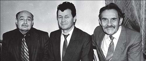 Кримськ╕ укра╖нц╕ (справа нал╕во): письменник О. Корсовецький, сп╕вак О. Мартин╕в, головний редактор «Кримсько╖ св╕тлиц╕» В. Миткалик (фото з арх╕ву «КС»)
