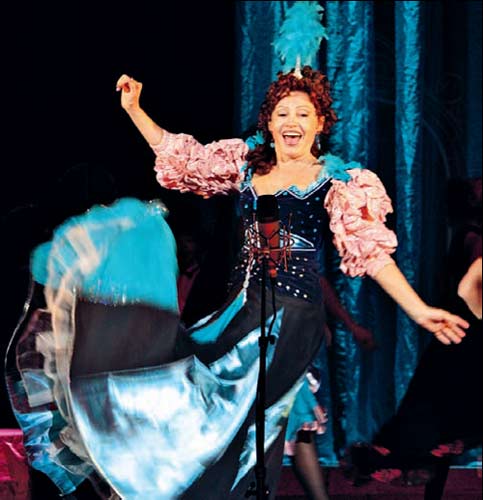 У нов╕й постановц╕, приурочен╕й 130-р╕ччю з дня народження угорського композитора, вже майже не залишилося н╕кого з попереднього складу виконавц╕в ролей. Головних геро╖в грають молод╕ артисти, лише Валер╕й Карпов, народний артист Укра╖ни, який 25 рок╕в тому виконав роль Бон╕, тепер став на сцен╕ старшим за в╕ком Ферр╕. А ╕стор╕ю аристократа Едв╕на та артистки вар’╓те С╕льви пристрасною музичною мовою блискуче розпов╕в дует заслуженого артиста Укра╖ни Владислава Черн╕кова та заслужено╖ артистки АРК Тамари Гончаренко. Традиц╕йний сюжет про св╕т, де ╓ щир╕сть ╕ непорозум╕ння, на╖вна самов╕ддан╕сть ╕ фальш, пристрасть ╕ розлука, з’╓дну╓ться вокальними парт╕ями, грайливими д╕алогами, запальними танцями в яскраве ╕ динам╕чне фе╓ричне видовище. Такий сценар╕й просто не ма╓ права на нещасливий ф╕нал. ╤ спектакль справджу╓ спод╕вання глядач╕в. ╤з багатьох ж╕нок на св╕т╕ для героя ╤. Кальмана з першо╖ до останньо╖ хвилини третьо╖ д╕╖ кумиром ╓ одна. ╥хн╓ вза╓мне захоплення, дружба ╕ молод╕сть завершуються щастям кохання, сп╕взвучним людям у минул╕ в╕ки ╕ сьогодн╕. За це «С╕льву» справедливо називають оперетою вс╕х час╕в ╕ народ╕в. Ц╕╓ю постановкою театр п╕дтвердив свою добру традиц╕ю розпочинати кожний новий сезон прем’╓рою. ╤ вона буде в цьогор╕чному репертуар╕ не одна, — сказав на прес-конференц╕╖ директор театру, заслужений прац╕вник культури Укра╖ни Володимир Загурський. В╕н вибачився перед журнал╕стами за тимчасов╕ незручност╕, пов’язан╕ ╕з закриттям входу в адм╕н╕стративну частину прим╕щення. Останн╕ штрихи в його прикрашанн╕ перед в╕дкриттям сезону роблять ремонтники ╕, як завжди, не встигають. — Якщо ран╕ше ми щороку з╕ сво╖х прибутк╕в витрачали близько п’ятдесяти тисяч гривень на косметичн╕ ремонти, то нин╕шнього року ця сума буде б╕льшою в десять раз╕в, — сказав В. Загурський. – За ф╕нансово╖ п╕дтримки Ради м╕н╕стр╕в АРК в╕дремонтовано закул╕сну частину театру, гримувальн╕ к╕мнати артист╕в. Минулий театральний сезон, за його словами, був дуже усп╕шним для трупи. При план╕ 231 спектакль з╕грано 316, тобто сцена була в д╕╖ майже щодня, а ╕нколи – ╕ по два рази на день. Обслужено близько 120 тисяч глядач╕в, отримано 3 м╕льйони 450 тисяч гривень доход╕в. Це найб╕льша за останн╕ роки сума, яка зростала в цифров╕й прогрес╕╖ в╕д 200 тисяч до 500, в╕д 1 м╕льйона до п╕втора, двох. Однак нав╕ть з досягнутим власним ф╕нансовим рекордом театр не може соб╕ дозволити розк╕шний шик, бо п╕сля оплати вс╕х рахунк╕в за енергонос╕╖, як╕ можуть вбити ╕ закрити будь-який заклад, добових прац╕вникам на гастролях та ╕нших господарських витрат йому з кожно╖ зароблено╖ гривн╕, як не рахуй, залиша╓ться 25 коп╕йок. Не отримуючи за останн╕ п’ятнадцять рок╕в з державного бюджету ф╕нансово╖ п╕дтримки, колектив багато що робить не за рекомендованим штатом чи кошторисом, а всупереч йому: ставить спектакл╕, на як╕ в ╕нших театрах витрачають вдв╕ч╕ б╕льш╕ суми (постановка «С╕льви», наприклад, об╕йшлася в 40 тисяч гривень при потреб╕ 80-100 тисяч), оц╕ню╓ при стартовому оклад╕ артист╕в 1700 гривень ╖хню високу майстерн╕сть ╕ профес╕онал╕зм з коеф╕ц╕╓нтом «два». Економ╕я в затратах досяга╓ться за рахунок пошуку творчих р╕шень в оформленн╕ декорац╕й, пошитт╕ кос