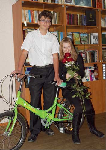 Нагаду╓мо, що ЛИШЕ ДО К╤НЦЯ ЛИСТОПАДА приймаються матер╕али на творчий конкурс серед юних читач╕в — школяр╕в Криму ╕ вс╕╓╖ Укра╖ни з нагоди 13-р╕ччя кримсько╖ дитячо╖ газети «Джерельце» п╕д Шевченковим гаслом «Мен╕ тринадцятий минало...». Надсилайте на адресу редакц╕╖ (звичайною або електронною поштою) ваш╕ л╕тературн╕, поетичн╕, публ╕цистичн╕ твори — на будь-як╕ теми, як╕ могли б бути надрукованими в дитяч╕й газет╕. Компетентне жур╕, яке очолю╓ незм╕нний шеф-редактор «Джерельця» Данило Андр╕йович Кононенко, оц╕нить ╕ в╕дбере кращ╕ творч╕ доробки, автори яких отримають шанс вибороти суперприз (розкладний велосипед!) та ╕нш╕ нагороди. Кр╕м творчих завдань ╓ й ц╕лком конкретн╕, за як╕ будуть нарахован╕ додатков╕ бали. Ось два з них: — КОЛИ ВИЙШОВ ПЕРШИЙ НОМЕР «ДЖЕРЕЛЬЦЯ»? — ХТО, НА ВАШУ ДУМКУ, НАДАВ ДЛЯ ПЕРЕМОЖЦЯ КОНКУРСУ У «ДЖЕРЕЛЬЦ╤» ГОЛОВНИЙ ПРИЗ — ВЕЛОСИПЕД? Чека╓мо на ваш╕ в╕дпов╕д╕, в╕рш╕, опов╕дання, репортаж╕, новели, статт╕. Твор╕ть! Дерзайте! Перемагайте! * * * На фото: з призовим велосипедом — Настя Тарасюк ╕ Данило Михайличенко, учн╕ НВК «Укра╖нська школа-г╕мназ╕я», м. С╕мферополь
