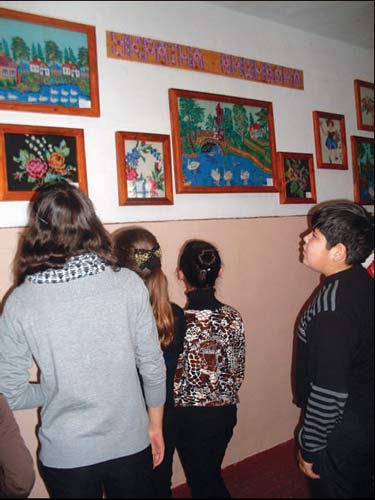 Ц╕кава под╕я сталася в Нижньог╕рськ╕й ЗОШ ╤-╤╤╤ ступен╕в № 2 — 10 грудня в╕дбулося урочисте в╕дкриття галере╖ вишитих картин п╕д назвою «Укра╖на вишивана». У н╕й виставлено 14 картин, р╕зних за тематикою, розм╕ром, мотивами. А починалось усе з╕ створення етнограф╕чного куточка в каб╕нет╕ укра╖нсько╖ мови та л╕тератури, в якому з╕брано вже чимало експонат╕в побуту й культури укра╖нського народу. Також приверта╓ увагу й експозиц╕я рушник╕в (близько 40!), з╕браних ╕з р╕зних рег╕он╕в Укра╖ни. А ще учн╕, вчител╕, просто хорош╕ люди приносили й дарували нашому куточку вишит╕ картини, як╕, на мою думку, ╓ справжн╕ми шедеврами! Назбиралося таких картин чимало. ╤ от наша вчителька укра╖нсько╖ мови та л╕тератури Св╕тлана Микола╖вна Миронюк (на фото) запропонувала створити галерею вишитих картин. Був складений план д╕й, за яким кожен учасник народознавчого гуртка «Джерельце» в╕дпов╕дав за конкретну справу: хтось описував ц╕ картини, хтось ф╕ксував формат, ус╕ разом малювали карту-схему розм╕щення картин на ст╕н╕. Але перед нами постала проблема: картини без рамок. По допомогу ми звернулися до директора Олександра Павловича Толмача та завгоспа нашо╖ школи Людмили Олександр╕вни Кисельово╖. Вони одразу погодилися нас п╕дтримати в ц╕й благородн╕й справ╕. Тож рамки для картин виготовляв наш слюсар – майстер на вс╕ руки – Анатол╕й Васильович Гришин. ╤ ось результат нашо╖ роботи! Коли учн╕ прийшли до школи ╕ побачили ц╕ шедеври, ус╕ були в захват╕. Хлопц╕ дивувалися: ск╕льки терп╕ння треба було мати, щоб вишити так╕ картини? Розм╕р найб╕льшого витвору «Лебед╕ на ставу» — 78 на 55 см! Ск╕льки часу створювала майстриня цю картину? Малеча диву╓ться: ск╕льки ниток витрачено на один такий шедевр? Чотири картини на одну тематику «Лебед╕» подаровано Мар╕╓ю К╕ндрат╕вною Сопленко з Полтавщини. Це бабуся одного з наших учн╕в. Тепер в╕н ще б╕льше пиша╓ться сво╓ю бабусею. К╕лька витвор╕в на тему флористики «Троянди», «Ф╕алки», «Кв╕ти в кошику» привезли з Р╕вненсько╖ област╕. Привертають увагу ц╕ картини тим, що вишивка зроблена на матер╕ал╕ чорного кольору. Це дуже гарно! У колекц╕╖ ╓ к╕лька картин на сюжети казок, наприклад, «Козлики на м╕стку», «Лисиця й п╕вень». На них задивляються молодш╕ школяр╕. Галерею розм╕стили на ст╕н╕ в коридор╕ б╕ля укра╖нського каб╕нету. Кожен щодня, проходячи повз виставку, милу╓ться вишитими шедеврами. У школ╕ оголосили конкурс на кращий опис цих картин. Спод╕ва╓мося, що охочих буде чимало.