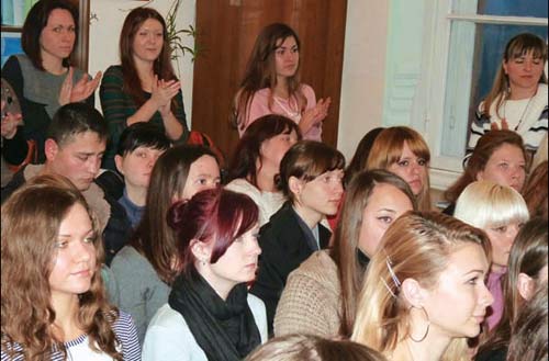 3 грудня 2012 р. виповнилось 290 рок╕в в╕д дня народження Григор╕я Сковороди — видатного укра╖нського ф╕лософа, поета, педагога. Ц╕й знаменн╕й дат╕ було присвячено тиждень укра╖нсько╖ ф╕лолог╕╖ в Севастопольському м╕ському гуман╕тарному ун╕верситет╕ (СМГУ). Кожен з дн╕в тижня мав сво╓ гасло, п╕д яким проводились осв╕тньо-п╕знавальн╕ заходи: майбутн╕ вчител╕ укра╖нсько╖ мови та л╕тератури проводили лектор╕╖, в╕кторини, акц╕╖, п╕знавальн╕ ╕гри, ╕нтелектуальн╕ змагання. Ус╕ студенти, викладач╕, сп╕вроб╕тники та гост╕ ун╕верситету мали можлив╕сть долучитися до л╕тературного доробку письменника, в╕дкрити для себе його ф╕лософськ╕ ╕де╖ та погляди, ознайомитися з непростим житт╓вим шляхом неперес╕чно╖ особистост╕. В ун╕верситет╕ також в╕дбулися й традиц╕йн╕ науков╕ та науково-методичн╕ заходи: науков╕ читання, «круглий ст╕л» «Сьогодн╕ студент — учитель завтра», конкурс на найкращий урок та мовн╕ змагання. 7 грудня особливо артистичн╕ студенти продемонстрували художньо-драматичну композиц╕ю «У дорогу з Григор╕╓м Сковородою», сценар╕й яко╖ на основ╕ праць Валер╕я Шевчука та спогад╕в учня Григор╕я Сковороди Михайла Ковалинського, наукових розв╕док Олекси Мишанича написала зав╕дувач кафедри укра╖нсько╖ ф╕лолог╕╖, кандидат педагог╕чних наук Олена Попова. Пл╕дною роботою та наочними результатами задоволен╕ ╕ студенти, ╕ викладач╕. Студентка групи УР-4 Л╕ля Карабашева розпов╕ла, що над виставою учасники працювали майже два м╕сяц╕ та отримали безц╕нний досв╕д в орган╕зац╕╖ таких творчих проект╕в, а також важливий досв╕д сп╕лкування студент╕в р╕зних груп, охоплених одн╕╓ю сп╕льною справою. ╤рина Коробач з групи УА-4 в╕дзначила рад╕сть в╕д напружено╖, але п╕знавально╖ в багатьох аспектах роботи. Причетн╕сть до усп╕шного виступу й залучення до тако╖ д╕яльност╕ вона вважа╓ за честь. Ус╕ учасники проекту високо оц╕нили роботу Олекс╕я Дмитр╕╓ва (УМ-4) — виконавця головно╖ рол╕ Григор╕я Сковороди, який ╕ сам в╕дпов╕дально, творчо поставився до сво╓╖ роботи, й ╕нших надихав та п╕дтримував. Под╕лившись враженнями, Олекс╕й в╕дзначив непросту роботу над неперес╕чним образом поета-ф╕лософа, п╕дкреслив, що його полонила глибина думки, закладена у текст╕ композиц╕╖, а оск╕льки сам студент-актор тяж╕╓ до поетично╖ творчост╕, то з╕гран╕ сцени дозволили подивитися на сво╓ захоплення новими очима. Висока ╕дея вшанувати ╕ якомога б╕льше п╕знати багатогранну особист╕сть об’╓днала ╕нтелектуальн╕ й творч╕ зусилля студент╕в ╕ викладач╕в. На урочистому п╕дбитт╕ п╕дсумк╕в тижня укра╖нсько╖ ф╕лолог╕╖ студенти зв╕тували про проведену роботу та демонстрували сво╖ таланти та вм╕ння у сво╖х в╕деороботах, презентац╕ях, творчих номерах. Присутн╕ овац╕ями зустр╕чали найб╕льш вдал╕ кадри та коментар╕. Почули ми ╕ виконання студентами оптим╕стичних укра╖нських п╕сень. До проведення культурно-осв╕тн╕х заход╕в долучився Союз укра╖нок м. Севастополя в особ╕ голови Тамари Мельник та почесно╖ голови Богдани Процак. Студентам — учасникам художньо-драматично╖ композиц╕╖ було подаровано прим╕рники чудово╖ книги Петра Сороки «Маленьк╕ секрети щастя ╕ усп╕ху», яка, за словами автора, ╓ плодом «…численних лекц╕й та дискус╕й ╕ дов╕рчих сп