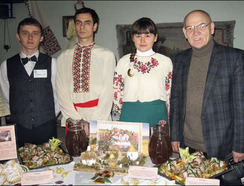 Орган╕заторами ц╕╓╖ виставки-конкурсу стали М╕н╕стерство культури Криму, Республ╕канський ком╕тет у справах нац╕ональностей та депортованих громадян ╕ С╕мферопольське вище профес╕йне училище ресторанного серв╕су та туризму. В╕дкрив свято нац╕онально╖ кухн╕ один ╕з прац╕вник╕в ком╕тету у справах нац╕ональностей Юр╕й Касмин╕н. Слово мали також його голова Рефат Кенжал╕╓в, м╕н╕стр культури Криму Альона Плак╕да, директор етнограф╕чного музею Юр╕й Лапт╓в та кер╕вниця училища Марина Пальчук, яка зауважила, що сьогодн╕ викладач╕ училища разом з його учнями «простягають руку дружби ус╕м народам» ╕ що в конкурс╕ беруть участь т╕льки найусп╕шн╕ш╕ кухар╕. Якою ж була схема його проведення? Напередодн╕ представники культурних товариств (а це болгари, в╕рмени, молдавани, кримськ╕ татари, кара╖ми, кримчаки, греки, н╕мц╕, укра╖нц╕, рос╕яни, б╕лоруси, чехи) передали рецепти сво╖х страв конкурсантам, ╕ т╕ до початку заходу ╖х приготували. Дехто ж консультував молодь й п╕д час роботи. Тож зрозум╕ло, що в╕д самого початку не вс╕ конкурсанти були в р╕вних умовах — багато що залежало в╕д т╕╓╖ уваги, яка прид╕лялася ╖хн╕й робот╕ представниками нац╕онально-культурних товариств, як╕, зрештою, ╕ мали бути зац╕кавлен╕ в усп╕ху сво╓╖ кухн╕ чи не в першу чергу. Найб╕льше, здавалось, постаралися чехи. На ╖хньому стол╕ ╕ страв багато, ╕ виглядають вони дуже привабливо. Тут ╕ картоплян╕ кнедлики, шкубанки теж ╕з картопл╕, фарширован╕ цибулею та грибами, а також виготовлен╕ ╕з манки ╕ др╕жджового т╕ста, ╕ куряче ф╕ле, фаршироване апельсинами. Але найефективн╕ше вигляда╓ р╕здвяний тушкований короп. Саме в╕н у чех╕в ╓ обов’язковою стравою на Р╕здво. Про все це охоче ╕ в деталях розпов╕да╓ господиня столу, збираючи б╕ля себе найб╕льше зац╕кавлених. Надовго тут затриму╓ться ╕ жур╕, яке виставля╓ конкурсантам бали. До нього входять представники м╕н╕стерства, науковц╕-етнографи та прац╕вники музею. Прикметно, що чехи подбали не т╕льки про багатство столу. Поряд з представницею нац╕онально-культурного товариства у нац╕ональному вбранн╕ були ╕ юн╕ кухар╕-конкурсанти в б╕лих ковпаках та фартухах, ╕ такий же юний оф╕ц╕ант. А ось н╕мц╕, для яких, зда╓ться, ця презентац╕я була найзатратн╕шою (в╕д ╖хнього земляцтва роздавалися присутн╕м чудов╕ наст╕нн╕ та наст╕льн╕ календар╕), не знайшли можливост╕ побувати на свят╕. Б╕ля ╖хнього досить б╕дного столу, де були лише свиняча рулька та яблучн╕ оладки, самотньо стояв хлопчик-оф╕ц╕ант, якому важко було дати необх╕дн╕ пояснення, бо таких нац╕ональних страв в╕н не готував ╕ н╕коли не куштував. Про традиц╕йну для н╕мц╕в р╕здвяну гуску в╕н т╕льки згадував. Хоча, з ╕ншого боку, зрозум╕ло, що страва ця — недешева, а вид╕лен╕ кошти для приготування були незначними. Це зумовило ╕ обмежен╕сть нац╕ональних меню. На стол╕ у кримських татар були плов, пахлава, бурма ╕ самса. Кара╖ми презентували кара╖мськ╕ пир╕жки, ╕мурту (печен╕ яйця, присипан╕ с╕ллю та перцем) та халву, яка кухарям, на жаль, не вдалася. Неб╕дний ст╕л був ╕ у кримчак╕в. Його окрасою стали крих╕тн╕ пельмен╕ п╕д соусом. Поряд при╓мно було бачити юних в╕ртуоз╕в, як╕ все виготовляли власноруч. Саша Хорошав╕н та ╤ра Кучер розпов╕ли, що вони навчаються на першому 