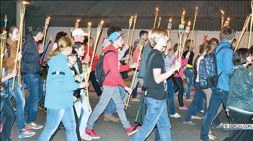 ╢ безл╕ч р╕зноман╕тних свят ╕ знаменних дат, як╕ шанують у наш╕й кра╖н╕ та за ╖╖ межами, це новор╕чн╕ й Р╕здвян╕ свята, 8 березня, Великдень тощо… Але серед усього цього розма╖ття ╓ один дуже особливий весняний день, котрий, я впевнена, не лиша╓ байдужим н╕кого, який озива╓ться болем у м╕льйонах сердець, ╕ без якого, ц╕лком можливо, не було б ╕нших дн╕в, не було б ус╕х нас, — це День Перемоги. Про Велику В╕тчизняну та взагал╕ про Другу св╕тову в╕йну протягом б╕льш як п╕встол╕ття було складено чимало п╕сень, написано безл╕ч книг, знято багато к╕ноф╕льм╕в, але вони не можуть передати всього болю й страждань, котр╕ випали на долю наших предк╕в. «…Страшн╕ чотири роки ми йшли до цього дня, вс╕ муки ╕ тривоги ми випили до дна…», — чу╓мо рядки з в╕домо╖ п╕сн╕ у виконанн╕ народно╖ артистки Укра╖ни Натал╕╖ Бучинсько╖. Нема╓, мабуть, жодно╖ родини, яку б не зачепило полум’я в╕йни… Нин╕ в День Перемоги в кра╖нах колишнього СРСР в╕дбува╓ться чимало заход╕в, однак по-особливому це свято в╕дчува╓ться в м╕стах, як╕ носять звання геро╖в, а таких на територ╕╖ нашо╖ В╕тчизни всього чотири. Я живу в одному з них – у славетн╕й Керч╕. Тут 9 травня – це завжди велелюдне свято, але найголовн╕ше те, що Керч чи не ╓дине м╕сто в ус╕й Укра╖н╕ й не т╕льки, де щороку напередодн╕ Дня Перемоги влаштовують смолоскипову ходу на знак вшанування подвигу народ╕в колишнього СРСР, ╕ саме про це я хочу розпов╕сти докладн╕ше. У д╕йств╕ беруть участь здеб╕льшого керченськ╕ школяр╕, але при╓днатися може кожен бажаючий. Колона з учасник╕в форму╓ться в центр╕ м╕ста о 20-й годин╕. До цього часу вс╕, хто хоче милуватися ходою згори, п╕дн╕маються на найвищу точку Керч╕ — гору М╕тр╕дат, яка ╓ в╕зит╕вкою м╕ста (до слова, цьогор╕ч централь-н╕ сходи було перекрито, тож керчанам ╕ гостям м╕ста довелося п╕дн╕матися на вершину майже 100 метр╕в маленькими стежинками та провулками). ╤ ось п╕сля восьмо╖ вечора, коли вже сутен╕╓, почина╓ться свято: з М╕тр╕дата в╕дкрива╓ться надзвичайно╖ краси д╕йство — вогненна р╕ка, що тече центральними вулицями м╕ста-героя в супровод╕ музики во╓нних л╕т… П╕д вигуки захоплення та бурхлив╕ оплески колону зустр╕чають на М╕тр╕дат╕, п╕сля цього наста╓ час театрал╕зовано╖ вистави на тему визволення м╕ста в╕д фашист╕в — ╕з формою тих рок╕в, постр╕лами й неп╕дробним ентуз╕азмом. Дивишся на вогн╕ н╕чно╖ Керч╕ з сам╕с╕нько╖ вершини, вдиха╓ш св╕же н╕чне пов╕тря й пахощ╕ кв╕тучого травня, милу╓шся спалахами фе╓рверка — ╕ зда╓ться, що час завмира╓, у таку мить найб╕льше в╕дчува╓ш горд╕сть за р╕дне м╕сто, за його славу й багатющу велику ╕стор╕ю. Не знаю, чи ╓ де-небудь ╕ще таке саме д╕йство, але без переб╕льшення можна сказати, що смолоскипова хода протягом не одного десятил╕ття стала таким самим символом Керч╕, як, наприклад, розкопки стародавнього Пантикапея. Це свято да╓ змогу в╕дчути ╓дн╕сть, нав╕ть певну причетн╕сть до того далекого людського подвигу. Маю над╕ю, що ця традиц╕я не помре, ╕ про сво╖х славних предк╕в д╕знаються майбутн╕ покол╕ння, адже ми не ма╓мо права забути тих, хто в╕двоював для нас мирне небо…