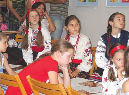 Пот╕м для наймолодших учасник╕в презентац╕╖ виставки – член╕в С╕мферопольського п╕дл╕ткового клубу «Шукач» Д. Т╕мон╕на провела майстер-клас. П╕д ╖╖ кер╕вництвом вони вчилися «одягати» акварельними фарбами роздан╕ модел╕ д╕вчинки в обран╕ народн╕ костюми. В╕дпущена у в╕льний пол╕т фантаз╕я лет╕ла за хмари, ╕ в руках д╕тей спочатку несм╕ливо, а пот╕м усе впевнен╕ше з’являлися барвист╕ еск╕зи суконь ляльок, як╕ немов готувалися до участ╕ у фольклорному парад╕.