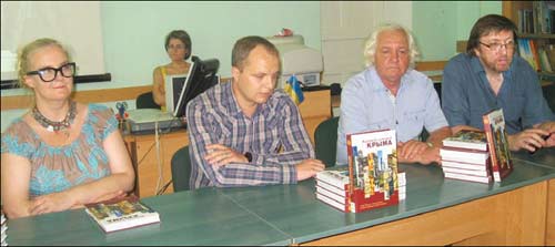 МИНУЛОГО ТИЖНЯ В КОНФЕРЕНЦ-ЗАЛ╤ ЕТНОГРАФ╤ЧНОГО МУЗЕЮ У С╤МФЕРОПОЛ╤ В╤ДБУЛАСЯ ПРЕЗЕНТАЦ╤Я КНИГИ ДМИТРА ПРОХОРОВА ╤ МИКИТИ ХРАПУНОВА «КОРОТКА ╤СТОР╤Я КРИМУ». КНИГА - ПОД╤Я НА НАЦ╤ОНАЛЬНОМУ КНИГОВИДАВНИЧОМУ РИНКУ! ПОД╤БНЕ ВИДАННЯ ВИХОДИТЬ ВПЕРШЕ В КРИМУ, А В УКРА╥Н╤ ВПЕРШЕ З’ЯВИЛАСЯ КНИГА ДВОМА МОВАМИ, ЩО РОЗПОВ╤ДА╢ ПРО ╤СТОР╤Ю П╤ВОСТРОВА З НАЙДАВН╤ШИХ ЧАС╤В ДО НАШИХ ДН╤В. Як ма╓ виглядати нав╕ть стисла ╕стор╕я Криму, яка м╕стить в соб╕ п╕втори сотн╕ тисячол╕ть (саме тод╕, за даними автор╕в, тут з’явилися перш╕ люди)? ╤ хоча на малюнку неандерталець ╕ не в╕дпов╕да╓ його опису в текст╕ (надто гладкий ╕ н╕ тоб╕ «скошеного» лоба, н╕ в╕дсутнього п╕дбор╕ддя), та у будь-якому раз╕, х╕ба ж хтось ╖х бачив? Симпат╕ю до цих людей виклика╓ те, що вони «турбувалися про старих ╕ кал╕к, як╕ не могли самост╕йно здобувати соб╕ ╖жу», ╕ хочеться, щоб це таки було правдою, особливо на тл╕ войовничо╖, п╕дступно╖ ╕ криваво╖ ╕стор╕╖, якою сповнен╕ наступн╕ тисячол╕ття, та й нин╕шнього байдужого св╕ту. Близько 35 тисячол╕ть тому в Криму з’явилися сучасн╕ люди, як╕ почали конкурувати з неандертальцями. 7 тисяч рок╕в тому кримчани навчилися вирощувати зернов╕ та розводити домашн╕х тварин, а ще через тисячол╕ття на зм╕ну каменю прийшли вироби ╕з металу (епоха бронзи). П╕зн╕ше водночас тут жили к╕ммер╕йц╕ (наявн╕сть яких у Криму деяк╕ ╕сторики взагал╕ п╕ддають сумн╕ву) ╕ таври. Пот╕м з’явилися кочов╕ племена ск╕ф╕в-скотовод╕в з досить сво╓р╕дними ╕ дуже жорстокими звичаями. «Коли ск╕ф убива╓ свого першого ворога, в╕н п’╓ його кров», — згаду╓ться в книз╕ «Коротка ╕стор╕я Криму» пов╕-домлення стародавнього грецького ╕сторика. З книги також можна дов╕датися про виникнення в Криму грецьких колон╕й, як╕ називалися м╕стами-державами ╕ почали тут з’являтися в IV тисячол╕тт╕ до н. е. Загроза з боку ск╕ф╕в змусила ╖х об’╓днатися в Боспорську державу з╕ столицею у Пантикапе╖. Пот╕м були готи ╕ гуни, останн╕ належали до монголо╖дно╖ раси ╕ могли вважатися справжньою Божою карою. Ось як охарактеризував ╖х Амм╕ан Марцелл╕н: «При дуже непри╓мн╕й людськ╕й подоб╕ вони так╕ дик╕, що не використовують н╕ вогню, н╕ приготовлено╖ ╖ж╕, а харчуються кор╕нням польових трав та нап╕всирим м’ясом». Вони вдень ╕ вноч╕ сидять на конях, нав╕ть сплять на них ╕ виконують так вс╕ сво╖ справи. Невдовз╕ на згадку про гун╕в та ╖хнього царя Ат╕ллу лишилися т╕льки багат╕ прикраси ╕з золота та дорогоц╕нного кам╕ння. Дал╕ Крим зазнав нашестя хазар, що розмовляли тюркською мовою, вт╕м, не вир╕знялися жорсток╕стю та насильством. Дуже ц╕кавим ╕ п╕знавальним ╓ розд╕л, присвячений д╕янням Кирила (Костянтина) ╕ Мефод╕я в Криму, батькам слов’янсько╖ азбуки ╕ пропов╕дникам християнства. Брати прибули в Крим на заклик хазарського кагана, який вагався, яку прийняти його народов╕, що належав до язичник╕в, в╕ру, чи то ╕уда╖зм, чи мусульманство, ╕ об╕цяв взяти до уваги пораду «мужа книжного», якщо той доведе, що його в╕ра — найкраща. Прибувши в Хазар╕ю, Костянтин переконав одного з полководц╕в прийняти хрещення. В╕н орган╕зував також пошуки мощей першого в Херсонес╕ християнина св. Климента, як╕ опинилися на дн╕ моря, ╕ знайшов ╖х. Так╕ чудеса багатьох навернули до християнства. Перем╕г пропов╕дни