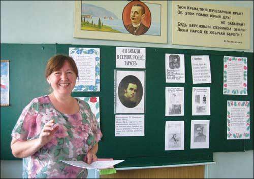 Д╕тей не обманути. Вони ╕нту╖тивно в╕дчувають фальш, лицем╕рство. Тому й тягнуться ╖хн╕ душ╕ до справжнього, неп╕дкупного. Таким ╓ Тарас Григорович Шевченко: справжн╕й, близький ╖м духовно. У цьому я ще раз пересв╕дчилася, коли провела перший у цьому навчальному роц╕ урок, присвячений 200-р╕ччю нашого Кобзаря. А допомогла мен╕ в цьому «Кримська св╕тлиця». Прочитала в газет╕ за 23 серпня публ╕кац╕ю «Шевченков╕ автопортрети» ╕ в╕ршован╕ п╕дписи-коментар╕ до них Адлера Корол╕ва. Вир╕шила взяти цю газету на урок ╕ дати почитати д╕тям. А тод╕ запропонувала мо╖м восьмикласникам в╕дпов╕сти на запитання: який з восьми опубл╕кованих у «Св╕тлиц╕» автопортрет╕в Шевченка найб╕льше ╖х вразив ╕ чому? Практично вс╕ учн╕ «проголосували» за «наймолодший» автопортрет 1840 року — напевне, це законом╕рно. Вразили не по-дитячому практичн╕ роздуми учн╕в над долею ген╕ального художника ╕ поета: вони щиро в╕рять у те, що якби вибрав юний Тарас у житт╕ безтурботний шлях, малював би багат╕ям портрети ╕ не писав проти влади, то був би багатий ╕ щасливий... Напевне, не один ще урок, вчитуючись у Шевченков╕ твори, д╕ти будуть переконуватися, що саме страждання ╕ прагнення захистити ближнього в╕д несправедливост╕ св╕ту цього («возвеличу малих отих раб╕в н╕мих ╕ на сторож╕ коло них поставлю Слово…») народжу╓ ген╕╖в. Поки учн╕ вибирали кращий автопортрет ╕ «радили» Тарасов╕ Григоровичу, як би в╕н мав писати, щоб не мати проблем з царями ╕ панами, все було легко, просто й невимушено. Та справжн╕ муки творчост╕ почалися, коли я запропонувала учням самим намалювати щось схоже на автопортрет ╕ написати простенький в╕ршик. Ось тут ус╕ й зрозум╕ли, що до ген╕╖в нам ще рости й рости! Але вт╕ша╓ вже те, що кожен на цьому уроц╕ хоча б спробував осягнути велич Шевченка ╕ ту ношу ген╕я, яку Бог поклада╓ на долю обраних. Ну, а написан╕ експромтом к╕лька рядочк╕в восьмикласниц╕ Вал╕ Вишневсько╖ просто розчулили ╕ окрилили: