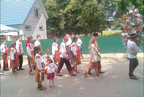 А як мамка в╕ночок доньц╕ на гол╕воньку покладе, тод╕ знову свахи сп╕вають: