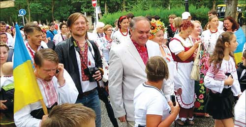 Н╕ для кого не буде новиною, що ╢впатор╕я вже давно перетворилася в одну з культурних столиць п╕вострова. Масштабн╕ й видовищн╕ заходи стали в╕зит╕вкою м╕ста. От ╕ минуло╖ суботи з ╕н╕ц╕ативи укра╖нсько╖ громади в ╢впатор╕╖ було орган╕зоване святкове ╕ яскраве д╕йство, присвячене одному з головних символ╕в Укра╖ни, — «Мегамарш у вишиванках». Об╕цяна сонячна субота з╕грала злий жарт, ╕ зам╕сть при╓мних ос╕нн╕х «оксамитових» промен╕в учасник╕в маршу оч╕кувала дощова погода з калюжами, промоклими тротуарами й темно-с╕рими хмарами над головами. Але х╕ба справжнього патр╕ота зляка╓ш якоюсь негодою! ╥й були протиставлен╕ барвист╕ в╕ночки з живих та штучних кв╕т╕в, яскраве намисто, пояси ╕, зрозум╕ло, укра╖нськ╕ сорочки з вишитими древн╕ми символами час╕в наших прабабусь ╕ прад╕д╕в. Кожен малюнок особливий, кожна ниточка й кожний ст╕бок в╕зерунка в╕д╕гра╓ свою роль. Непогожий день умить перетворився в святковий: барвист╕ костюми ╕, звичайно ж, щир╕ усм╕шки зробили свою справу — вся площа засяяла гарним настро╓м, зазвучала дзв╕нкими укра╖нськими голосами. Коли б╕льша частина учасник╕в з╕бралася, колона рушила м╕ськими вулицями заздалег╕дь нам╕ченим маршрутом. Зв╕дус╕ль лунали мотиви вс╕м в╕домих п╕сень: «Ти ж мене пiдманула», «Ой у вишневому саду...», «Реве та стогне Днiпр широкий...» та багатьох ╕нших. Голоси доповнювали один одного, п╕сн╕ зм╕нювалися, емоц╕╖ переповнювали, ╕ в серц╕ звучало: «Я люблю тебе, Укра╖но!». У марш╕ взяли участь ╕ маленьк╕ д╕тки в укра╖нських вишитих костюмчиках, у крих╕тних в╕ночках, молодь, люди старшого в╕ку. А об’╓днувала ╖х одна й в╕чна любов — до Батьк╕вщини, до р╕дного краю. Колона вся майор╕ла «жовто-блакитним»: майже вс╕ учасники свята п╕д час ходи несли прапори Укра╖ни, хто маленьк╕, хто б╕льш╕. Поблизу пам’ятника Тарасу Шевченку, де проходив невеличкий ярмарок з укра╖нськими виробами, до колони при╓днався м╕ський голова ╢впатор╕╖ Андр╕й Петрович Даниленко: — Я вважаю, що така под╕я, як «Марш вишиванок», ╓ важливою не т╕льки для м╕ста, але й для всього Криму. Це чудовий приклад народно╖ ╕н╕ц╕ативи. Люди сам╕ захот╕ли орган╕зувати соб╕ таке свято, ╕ це в них непогано вийшло. Ми повинн╕ усв╕домлювати, що живемо в ╓дин╕й кра╖н╕, ╕ орган╕зац╕я таких заход╕в зм╕цню╓ ╖╖ й робить кращою. Сьогодн╕шн╕й марш — це акт народного вияву, коли люди р╕зних нац╕ональностей ╕ громад об’╓дналися заради ╓дино╖ мети. ╤ я хочу, щоб в наш╕й кра╖н╕ перестали казати Сх╕дна Укра╖на або Зах╕дна. Хочу, щоб ми ус╕ пишалися нашою р╕дною В╕тчизною й говорили ╕ на Заход╕, й на Сход╕, що ми – укра╖нц╕!» — прокоментував «Мегамарш вишиванок» укра╖нською, зауважте, мовою Андр╕й Петрович. Учасники ходи под╕лилися сво╖ми враженнями в╕д побаченого. Оксана: — «Мегамарш вишиванок» — це патр╕отична й гарна акц╕я! Д╕знавшись, що в нас буде проходити такий зах╕д, я не замислюючись вир╕шила брати у ньому участь. Колись давно в кожн╕й укра╖нськ╕й родин╕ були вишиванки. В будн╕ носили одного виду сорочки, на свята — б╕льш ошатн╕. На мен╕ сьогодн╕ вишиванка мами, я бережу ╖╖. Спод╕ваюся, що знайду тут сво╖х однодумц╕в, ╕ ми здорово, «в╕д душ╕» посп╕лку╓мося. Брон╕слава: — Завдяки таким сп╕льним святам укра╖нський народ в╕дроджу╓ться! 