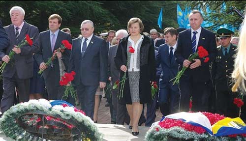 Президент Укра╖ни В╕ктор Янукович, екс-президенти Леон╕д Кравчук, Леон╕д Кучма, В╕ктор Ющенко, Прем’╓р-м╕н╕стр Микола Азаров, Голова Верховно╖ Ради Володимир Рибак, голова Ки╖всько╖ м╕сько╖ державно╖ адм╕н╕страц╕╖ Олександр Попов, члени Каб╕нету М╕н╕стр╕в з нагоди Дня визволення Укра╖ни в╕д фашистських загарбник╕в поклали кв╕ти до могили Нев╕домого солдата. Во╖ни роти Почесно╖ варти на честь 69-о╖ р╕чниц╕ визволення Укра╖ни пройшли урочистим маршем та в╕дсалютували залпами з особисто╖ збро╖. Учасники церемон╕╖ також вшанували кв╕тами трич╕ Героя Радянського Союзу ╤вана Кожедуба, дв╕ч╕ Героя Радянського Союзу Амет-Хана Султана ╕ Героя Радянського Союзу Георг╕я Берегового. * * * 28 жовтня в С╕мферопол╕ у парку ╕мен╕ Юр╕я Гагар╕на з нагоди 69-о╖ р╕чниц╕ визволення Укра╖ни в╕д фашистських загарбник╕в в╕дбулося покладання кв╕т╕в до могили Нев╕домого солдата. У заход╕ взяли участь Пост╕йний Представник Президента Укра╖ни в АР Крим В╕ктор Плак╕да, голова Ради м╕н╕стр╕в АР Крим Анатол╕й Могильов, перший заступник голови Ради м╕н╕стр╕в АР Крим Павло Бурлаков, заступник голови Ради м╕н╕стр╕в АР Крим Рустам Темиргал╕╓в, заступник голови Верховно╖ Ради АР Крим Григор╕й ╤оффе, м╕ський голова В╕ктор Аг╓╓в, представники м╕сько╖ влади, ветерани Велико╖ В╕тчизняно╖ в╕йни, громадськ╕сть. Пам’ять во╖н╕в вшанували хвилиною мовчання. В╕йськовослужбовц╕ Почесно╖ варти С╕мферопольського гарн╕зону пройшли урочистим маршем перед пам’ятником на могил╕ Нев╕домого солдата.