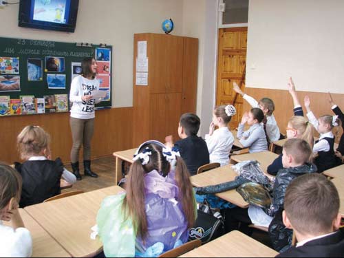 «╢ таке тверде правило: встав вранц╕, умився, прив╕в себе в порядок — ╕ в╕дразу ж приведи в порядок свою планету» — ц╕ слова Антуана де Сент-Екзюпер╕ стали лейтмотивом орган╕зованого б╕бл╕отекою-ф╕л╕╓ю № 4 ╕м. М. М. Коцюбинського Централ╕зовано╖ б╕бл╕отечно╖ системи для дорослих м. С╕мферополя в партнерств╕ з С╕мферопольським товариством любител╕в астроном╕╖, астроном╕чною обсерватор╕╓ю МАН для учн╕в 4-Б класу г╕мназ╕╖ № 9 (викладач ╤рина Том╕лова) ЕКО-КРА╢ЗНАВЧОГО КАЛЕЙДОСКОПА «МИ — Д╤ТИ ПЛАНЕТИ ЗЕМЛЯ». У програм╕ заходу: еко-л╕тературна ода «Земля — наш сп╕льний д╕м», театрал╕зована вистава «Богатир╕ на захист╕ еколог╕╖», еко-в╕кторина «Знавц╕ природи», книжкова викладка «Ц╕кава еколог╕я». Сучасн╕ школяр╕ люблять дивитися мультф╕льми, художн╕ ф╕льми, головною темою яких ╓ космос. Все нев╕доме ╕ незрозум╕ле розбурху╓ дитячу фантаз╕ю. Планета Земля — ╓диний д╕м людства в безмежних просторах Всесв╕ту. Земля — дивовижна ╕ ун╕кальна планета, багато загадок яко╖ не розкрит╕ ╕ не розгадан╕. Все, що ╓ прекрасного навколо нас, — гори, зелен╕ парки, л╕си ╕ сади, р╕чки ╕ моря, все це — наша р╕дна планета Земля! З раннього в╕ку люди намагаються п╕знати навколишн╕й св╕т, який повний загадок ╕ та╓мниць. У фонд╕ б╕бл╕отеки ╕м. Коцюбинського ╓ чудов╕ енциклопед╕╖, ╕люстрован╕ журнали, художн╕ та науково-популярн╕ твори, написан╕ в захоплююч╕й ╕ доступн╕й форм╕, як╕ допоможуть не т╕льки розширити кругоз╕р учн╕в, але ╕ навчать ╖х дбайливо ╕ з любов’ю ставитися до нашого сп╕льного Дому — планети Земля. Зав╕дувач б╕бл╕отеки ╤рина Рейдер прочитала учням в╕рш╕ про Землю, а також представила еко-викладку «Ц╕кава еколог╕я», ознайомивши з книгами з фонду б╕бл╕отеки. Д╕ти теж п╕дготували в╕рш╕ про улюблену планету. Сам╕ учн╕ п╕дготували ╕ представили гостям ╕ однокласникам театрал╕зовану виставу «Богатир╕ на захист╕ еколог╕╖». Еко-в╕кторина «Знавц╕ природи», проведена для учн╕в б╕бл╕отекарем 1 категор╕╖ Тетяною Соколовою, присвячувалася тим, хто живе на планет╕ Земля разом з людиною — представникам неповторного ╕ р╕зноман╕тного тваринного св╕ту — птахам, зв╕рам, рибам, комахам. Разом з Галиною Григор╕вною Шевченко, зав╕дувачем юнацько╖ обсерватор╕╖ МАН «Шукач», та Натал╕╓ю Володимир╕вною Першиною, кер╕вником гуртка косм╕чного живопису, хлопц╕ та д╕вчата зд╕йснили захоплюючу подорож до з╕рок. З розпов╕д╕ Галини Григор╕вни вони д╕зналися чимало ц╕кавого про нашу планету Земля та ╖╖ м╕сце в Сонячн╕й систем╕. Натал╕я Володимир╕вна розкрила багато чого з того, що зда╓ться звичним ╕ буденним, пробудивши у юних землян ╕нтерес до одн╕╓╖ з найб╕льш захоплюючих наук — астроном╕╖. Представники обсерватор╕╖ принесли з собою осколок справжнього метеорита, а також показали д╕тям камен╕ з числа корисних копалин Криму, викликавши щире захоплення. Завершився зах╕д музичним номером учн╕в «Ми улюблену планету ображати не дамо!».