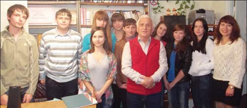 До Дня укра╖нсько╖ писемност╕ та мови в б╕бл╕отец╕-ф╕л╕╖ № 7 ╕м. Т. Г. Шевченка ЦБС м. С╕мферополя пройшла година укра╖нознавства «Велична, щедра та прекрасна мова... вона, як н╕жна п╕сня колискова...». З╕ вступним словом виступила зав╕дувачка б╕бл╕отеки, котра розпов╕ла присутн╕м на заход╕ студентам С╕мферопольського коледжу Нац╕онального ун╕верситету харчових технолог╕й про ╕стор╕ю виникнення укра╖нсько╖ мови, про важливу роль укра╖нсько╖ мови в консол╕дац╕╖ Укра╖нсько╖ держави. Наша укра╖нська мова належить до найбагатших мов св╕ту. Багато зробили для ╖╖ вдосконалення осв╕чен╕ люди р╕зних час╕в — письменники, вчен╕, видавц╕... Ми з вами отримали в спадок багату, розвинену, гнучку укра╖нську л╕тературну мову. Нею можна висловлювати все: в╕д найскладн╕ших ╕ нових терм╕н╕в до р╕зних в╕дт╕нк╕в людських почутт╕в. Народна мова — безмежний океан. Це ╕ п╕сня, народжена в давнину, сп╕вана в радост╕ й гор╕, яка переда╓ться ╕з вуст в уста ╕ в╕д серця до серця, це ╕ дума — тв╕р всенародного ген╕я, це ╕ казка, легенда, переказ, це приказки та присл╕в’я, жарт╕влив╕ п╕сеньки... А яка багата та мелод╕йна укра╖нська народна п╕сня! ╥╖ люблять ╕ з задоволенням сп╕вають не т╕льки у нас в кра╖н╕, але ╕ за кордоном. Не можна ходити по р╕дн╕й земл╕, не зачаровуючись виплеканою народом у в╕ках р╕дною мовою. Мова — надбання предк╕в, наше багатство. «У кого р╕дна мова, у того й душа здорова», — говорить народне присл╕в’я. Саме завдяки мов╕ ми можемо домовитися, передати сво╖ почуття, переживання. За допомогою мови ми збер╕га╓мо свою ╕стор╕ю, переда╓мо нащадкам безц╕нн╕ скарби минулого ╕ сьогодення. Вперше укра╖нську народну мову було зведено до р╕вня л╕тературно╖ наприк╕нц╕ ХVIII стол╕ття з виходом в 1798 роц╕ першого видання «Ене╖ди» ╤вана Котляревського, який вважа╓ться зачинателем ново╖ укра╖нсько╖ л╕тературно╖ мови. Продовжувачем традиц╕й став Тарас Шевченко, який сво╖м величезним талантом розкрив невичерпн╕ багатства народно╖ мови, осягнув ╖╖ ╕, як н╕хто ╕нший, передав прекрасну чар╕вну музику укра╖нського слова. Студенти С╕мферопольського коледжу Нац╕онального ун╕верситету харчових технолог╕й, члени клубу «Скарбниця» подивилися в╕деоф╕льм про Нестора-л╕тописця, п╕дготовлений сп╕вроб╕тниками Всеукра╖нського ╕нформац╕йно-культурного центру Юл╕╓ю Чепеножко та Денисом ╤ванченком. Пот╕м слово було надано заслуженому артисту Автономно╖ Республ╕ки Крим Аркад╕ю Вакуленку. В╕н зазначив, що культура народу — це його мова ╕ прочитав слухачам в╕рш╕ улюблено╖ поетеси Лес╕ Укра╖нки. Студентка 2 курсу Кримського ун╕верситету культури, мистецтв ╕ туризму Ольга Ткаченко виконала укра╖нськ╕ п╕сн╕ ╕ прочитала гуморески. Наприк╕нц╕ заходу Аркад╕й Вакуленко ознайомив студент╕в з гуморесками Павла Глазового ╕ прочитав дек╕лька сво╖х гумористичних твор╕в.