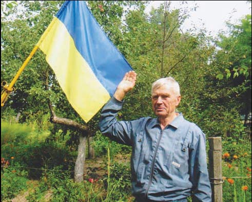Державний прапор б╕ля садиби щорс╕вця Павла Дмитровича Семененка майор╕╓ ╕ в свята, ╕ в будн╕